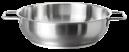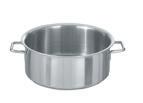 Made from high quality stainless steel 1.4301, thickness of material 0.8 mm, with pouring rim, with solid handles and thick multi-layer heat-conducting base.