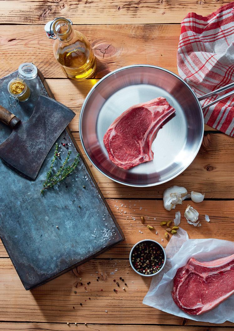 Frying pans made of high-quality 18/10 stainless steel, with a thick, multi-layer heat-conducting base. Perfect for searing meat. The structured surface is rolled into the material, ensuring sticking is kept to an absolute minimum when frying.