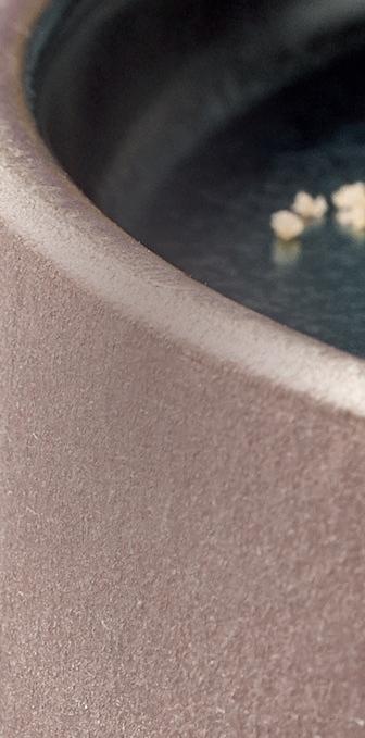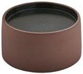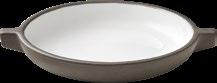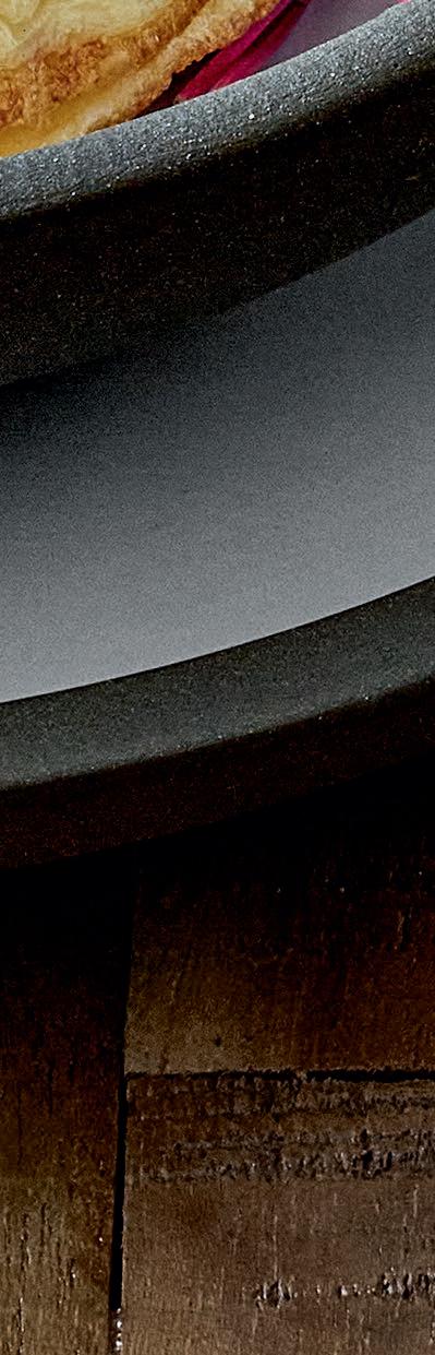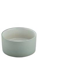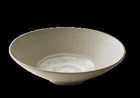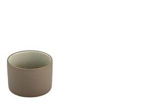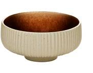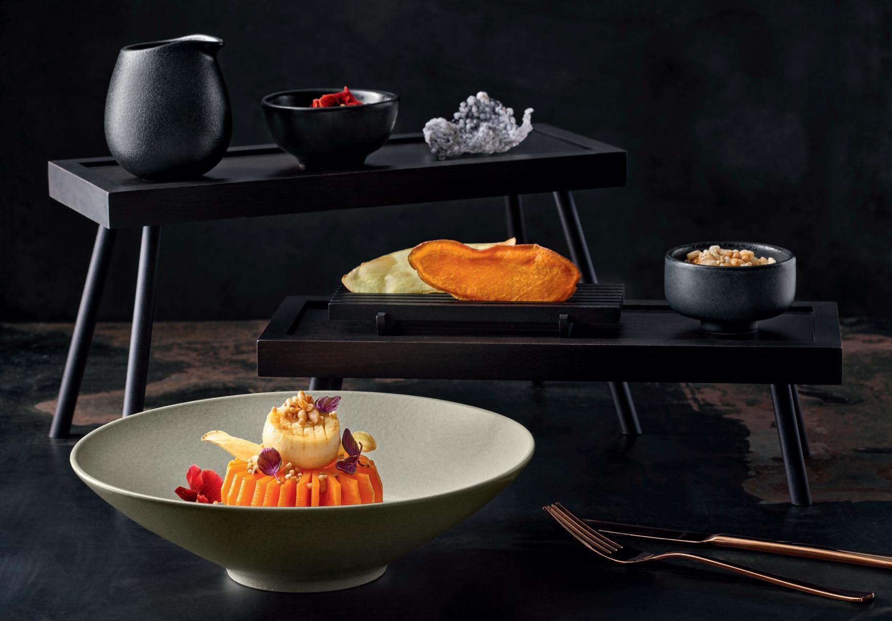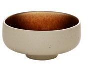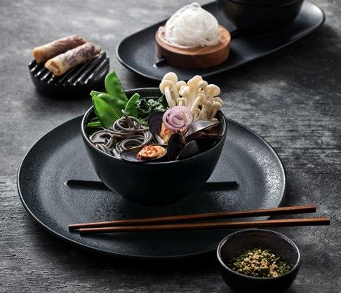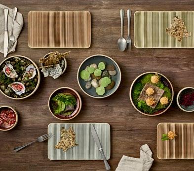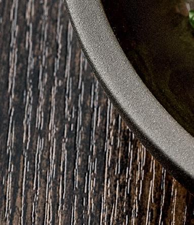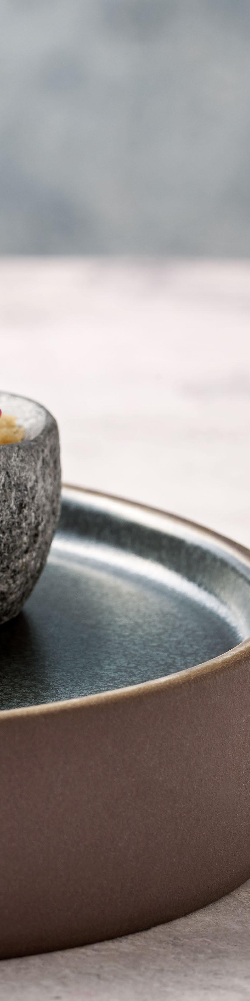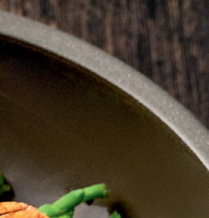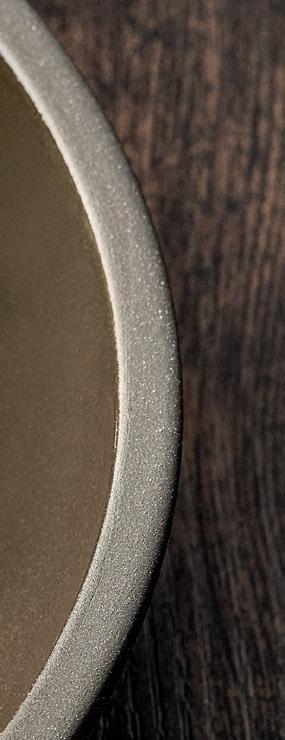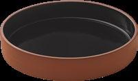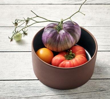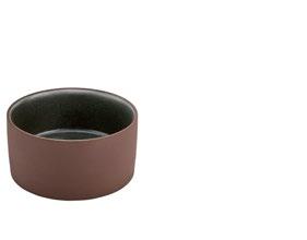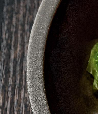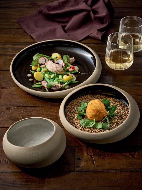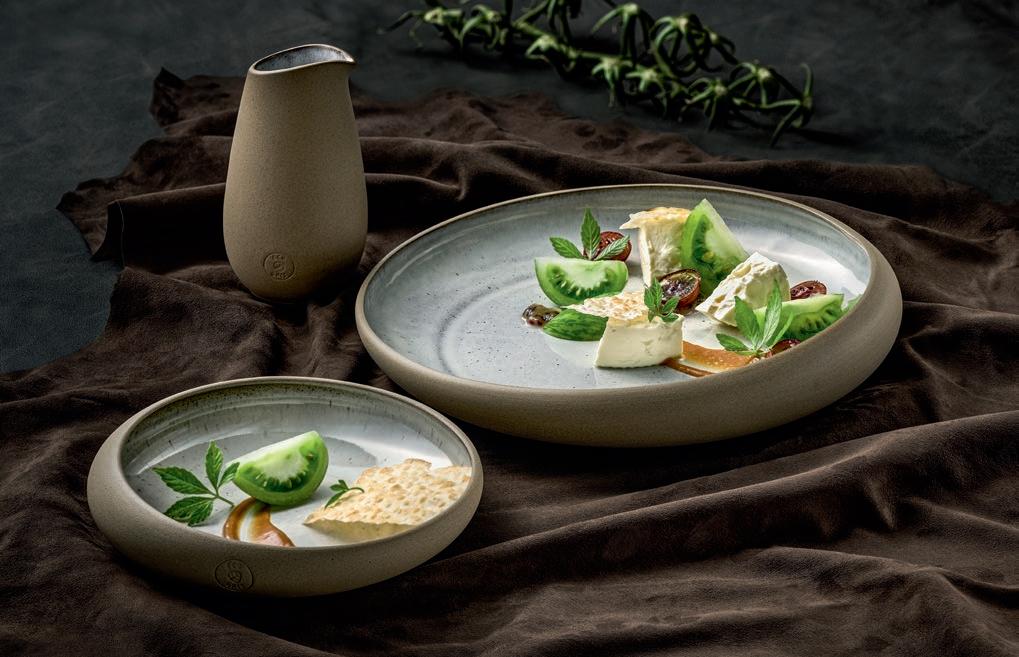 EYE-CATCHER. The RENEW collection brings together clay with recycled ceramic material. The exterior is matte, giving it a soft feel, and the interior is glazed so that the food can be presented on a hygienic surface.