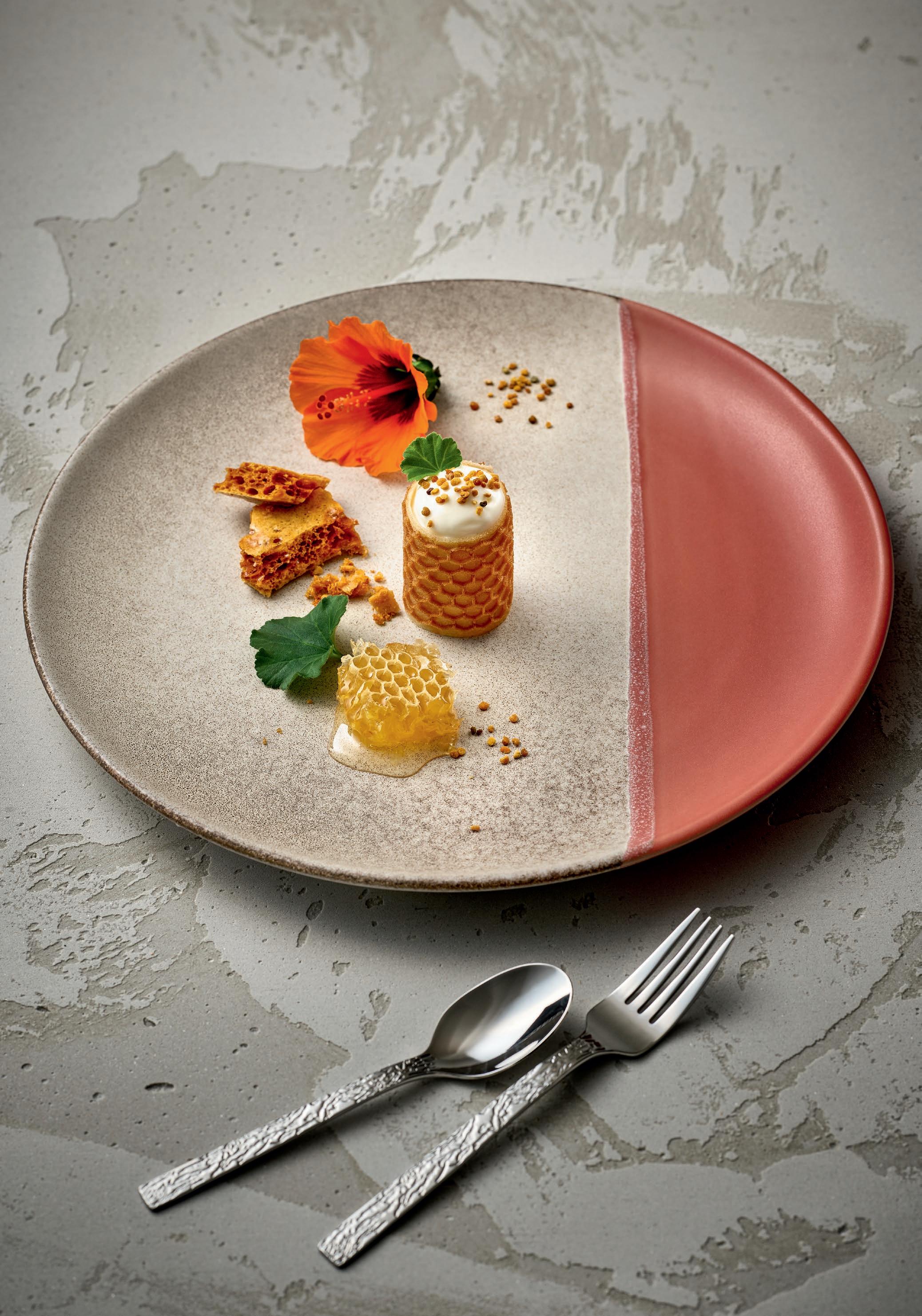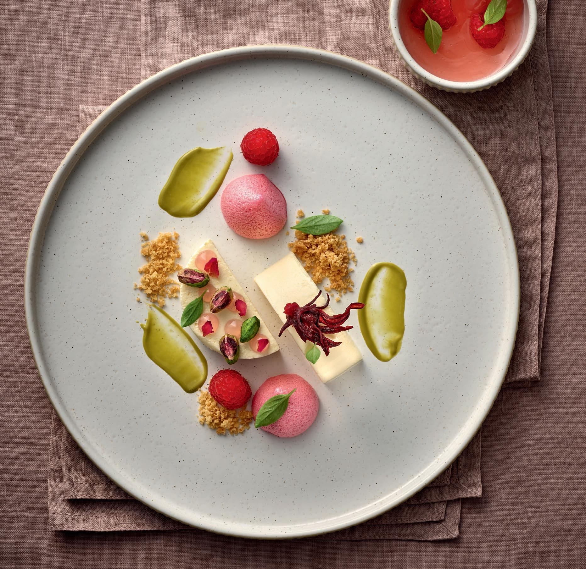 SPACE TO PLAY. The discreet elegance of the white NARA plates offers chefs and pastry chefs space to show off colorful facets of their art.
