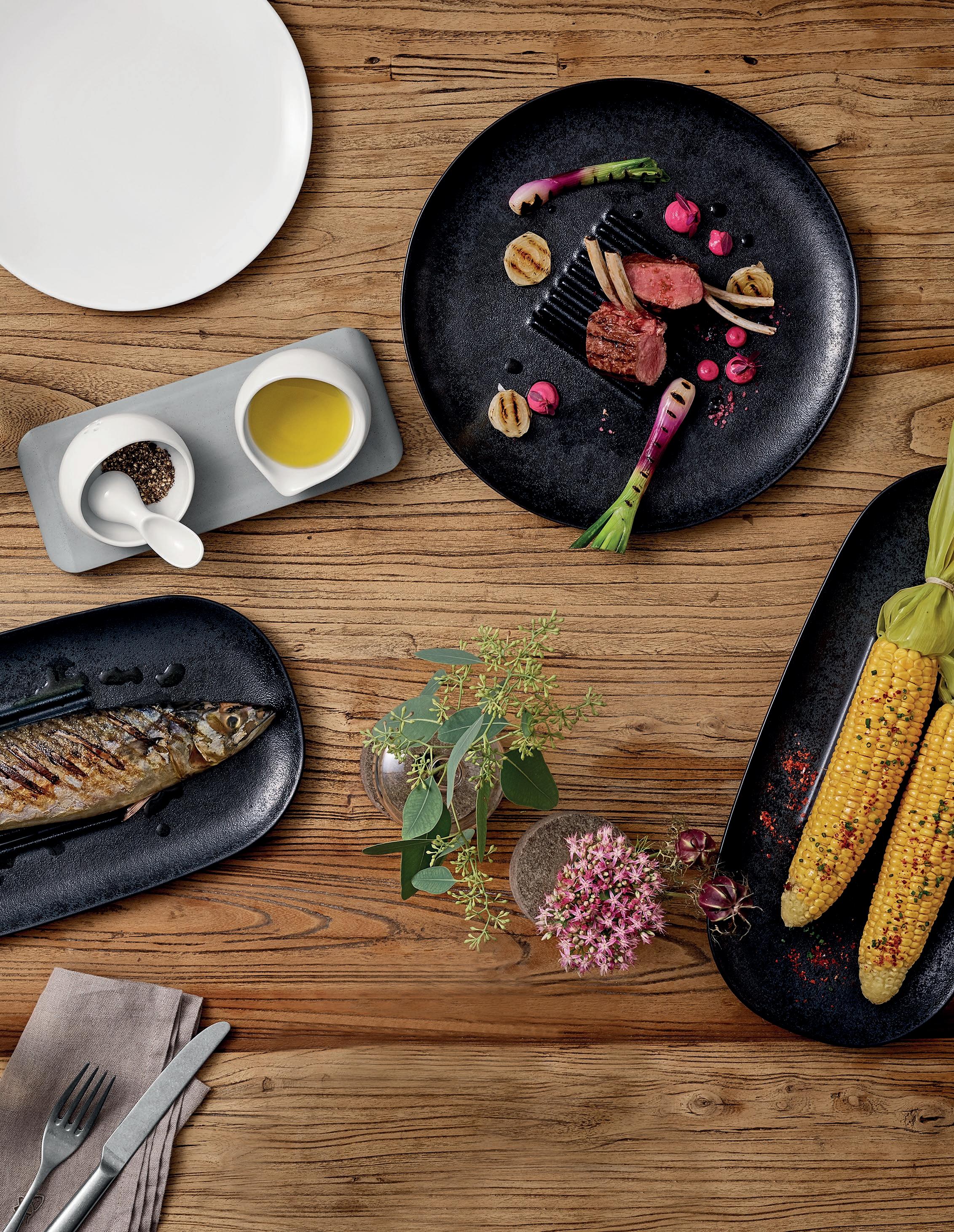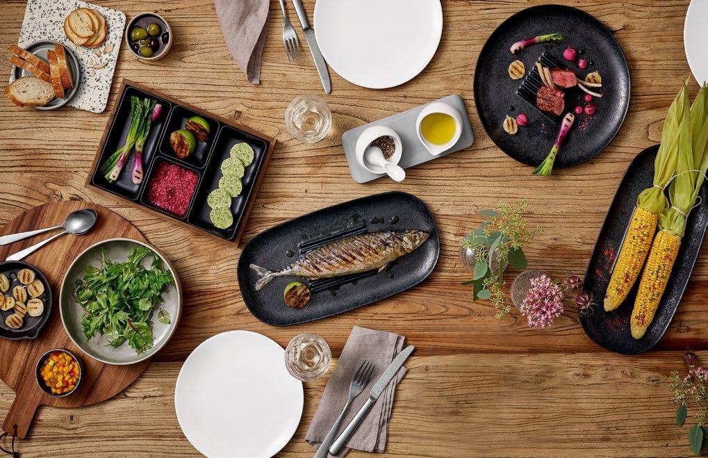 SHARING XXL. Dine like in the old days: Large roasts or fish are sliced and shared tableside. Vegetables and side dishes are served in bowls. The generous slabs and bowls of RENEW offer the surface and space you need.