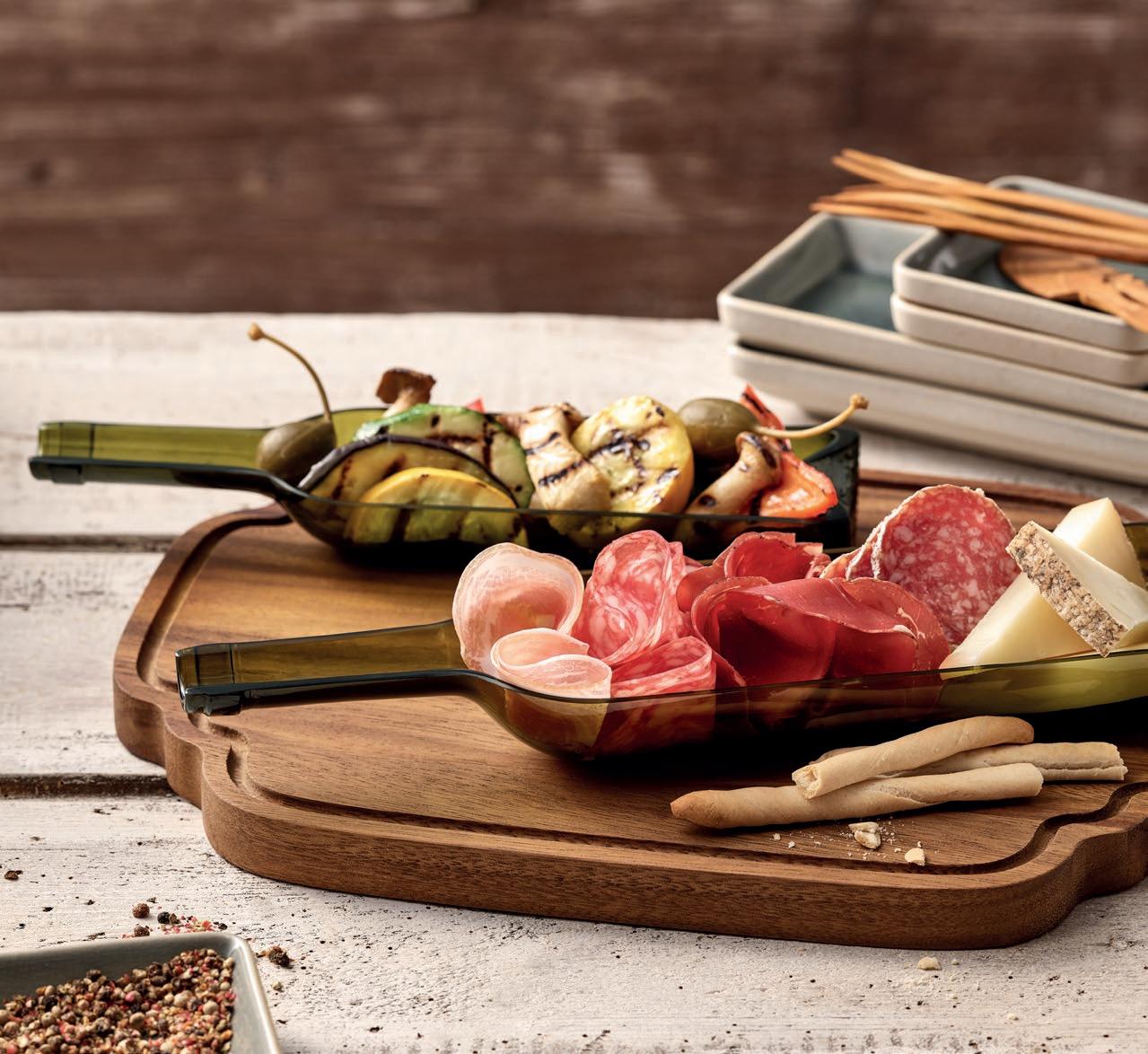SHARING IS CARING. With its striking relief, NARA black&white translates the new sociability into a visual and tactile experience. Second life: Wine bottles reincarnated for serving antipasti or as stylish lanterns and drinking glasses. The individual elements of the Amuse-Tower can also be used separately.