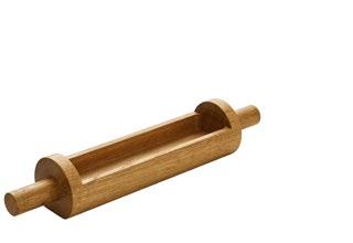 IT’S A MINI! Beim Trend zum gesunden Snacken punktet die internationale Küche, z.B. mit Samosas, leckeren Teigtaschen aus Indien. Originell präsentiert in einem Nudelholz aus Eiche –für besseren Stand auf der Unterseite abgeflacht.