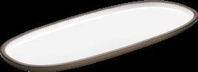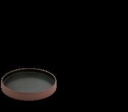 The stoneware plate 2in1 becomes a puristic stage for light entertainment. Both the top and the bottom serve as identical glazed presentation surfaces.