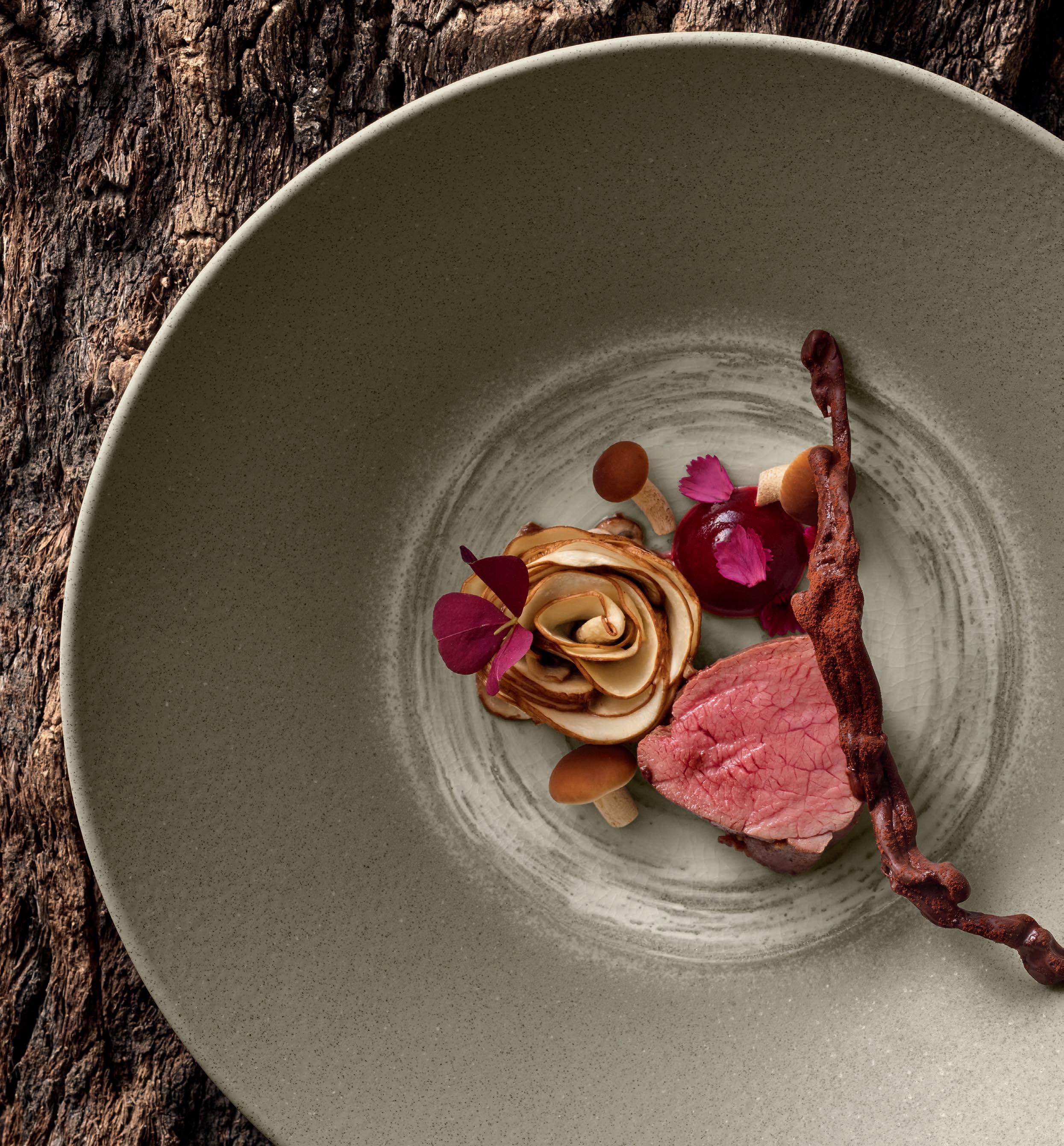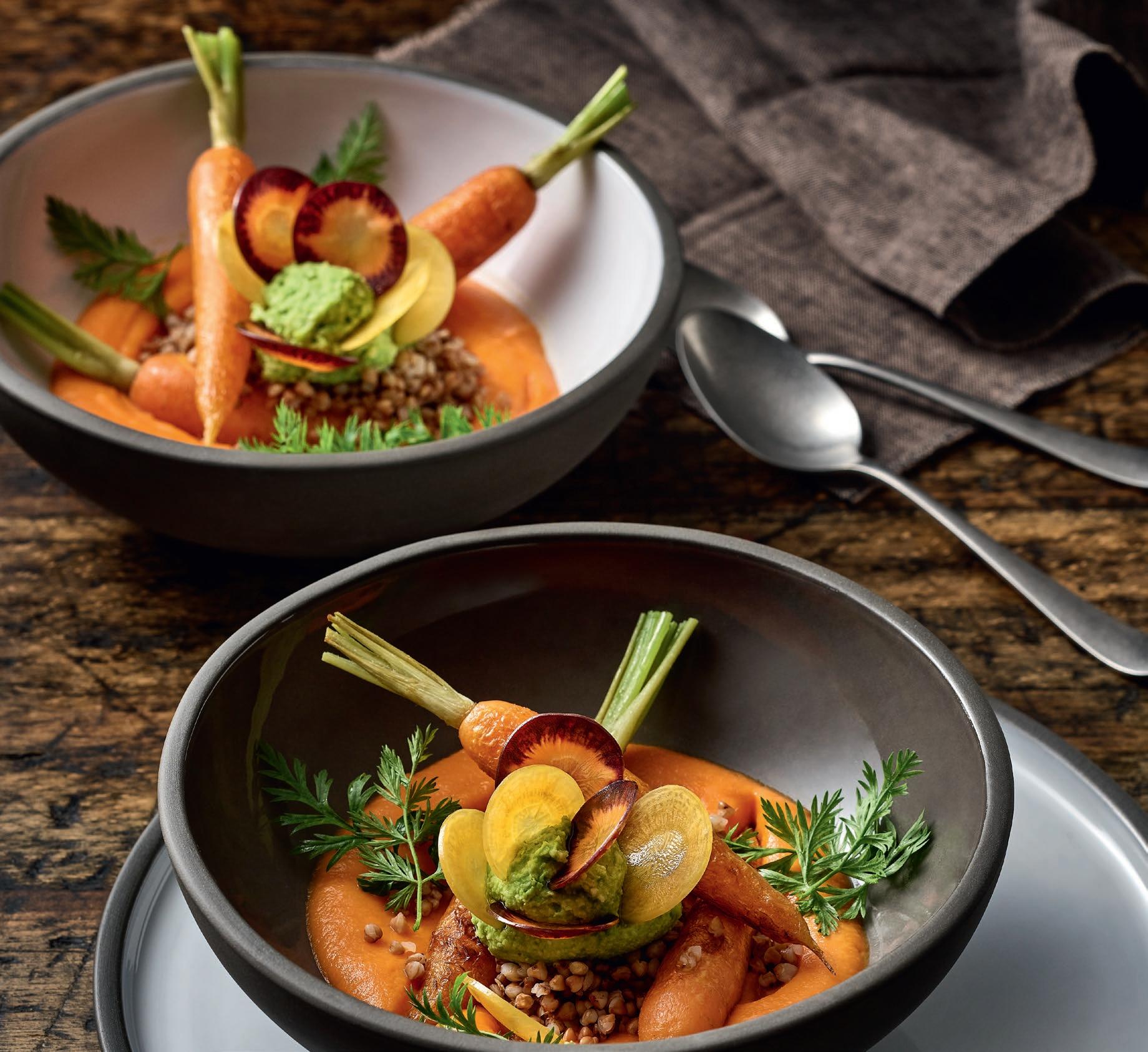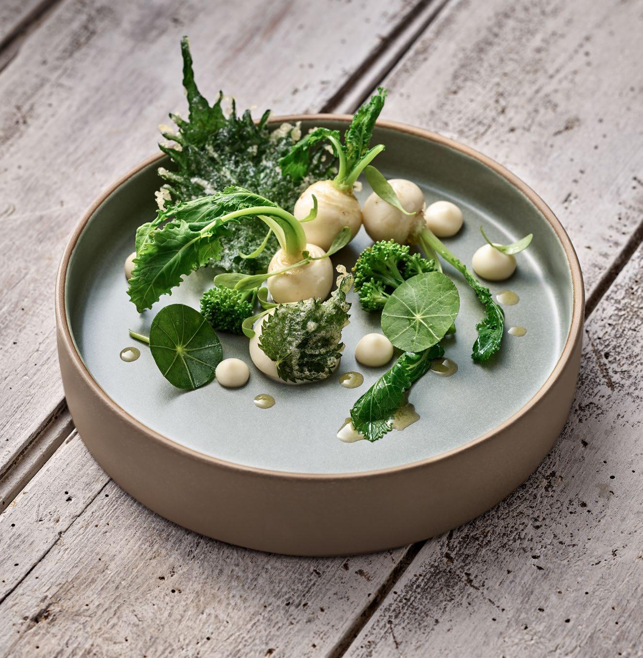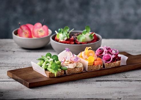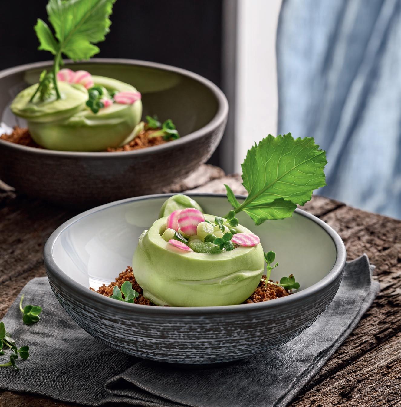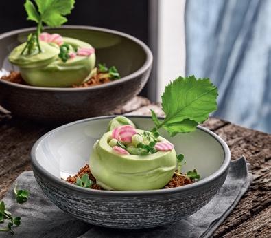 Plant Based Food hat sich fest auf den Speisekarten und in allen Kategorien etabliert: Snacks, Drinks, Mahlzeiten, Desserts werden pflanzlich dekliniert. Ein klarer Schulterschluss mit dem gewachsenen Nachhaltigkeits-Anliegen der Gäste. Dabei geht es um neue Geschmacks- und Texturerlebnisse, nicht um schnöde FleischImitationen. Zu den Zielgruppen zählen eingeschworene Vegetarier und Veganer genauso wie neugierige Flexitarier. Mit neuen oder wieder entdeckten Pflanzen und kühnen Kombinationen heben die Köche die Pflanzenküche auf ein neues Level: Löwenzahn, Kohl und Rote Bete stehen genauso auf dem Küchenplan wie Pilze, Kürbis und Blüten.