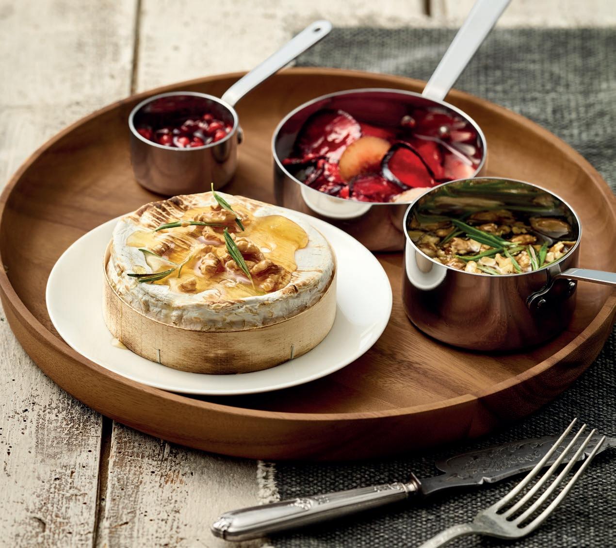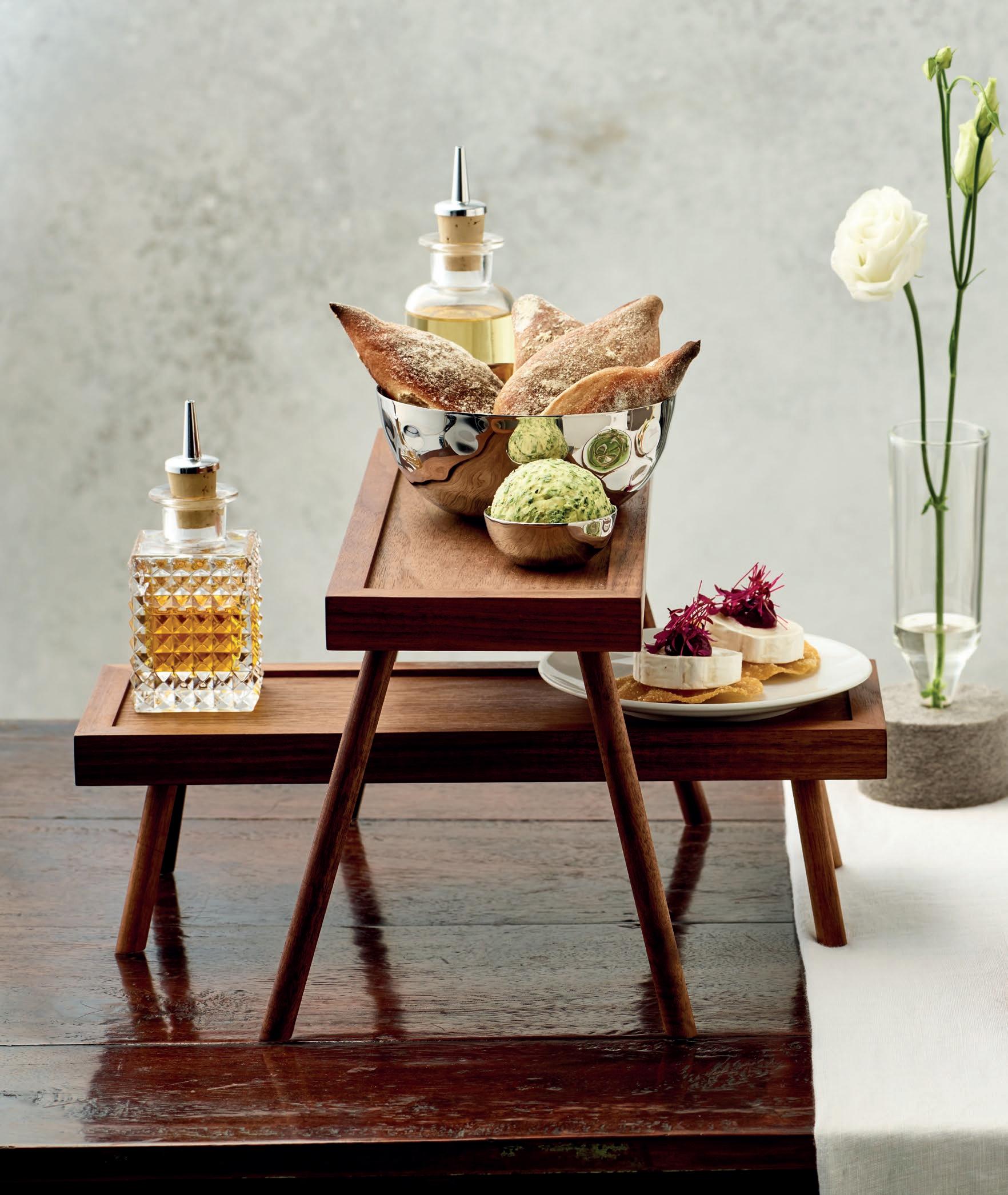 The small pan made from solid cast iron presented on a nostalgic wooden serving board speaks of old recipes. The TAVOLINI add a completely new dimension to the classic etagere.