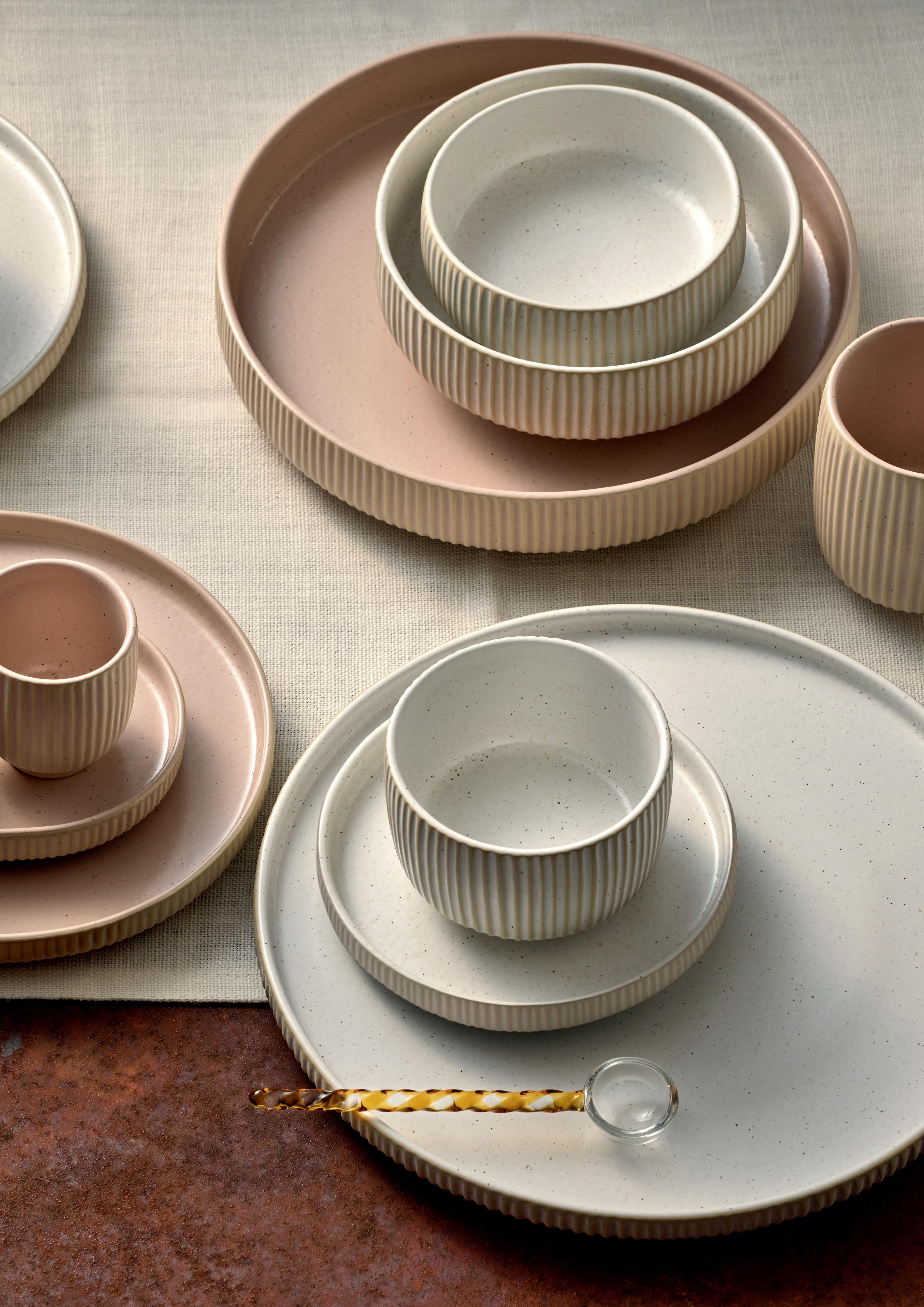 SHOWROOMS. Die schlichten Bowls und Platten der Steinzeugkollektion SEA geben einfachen Speisen ein modernes Outfit. Mit ihrer charakteristischen Riffelung erinnert die ovale Steinzeugplatte von COAST & COUNTRY an die lässige Zubereitung des Fleisches auf dem Grill. Den NARA Steinzeugteller mit trendiger Craquelé-Glasur gibt es in zwei Erdtönen.