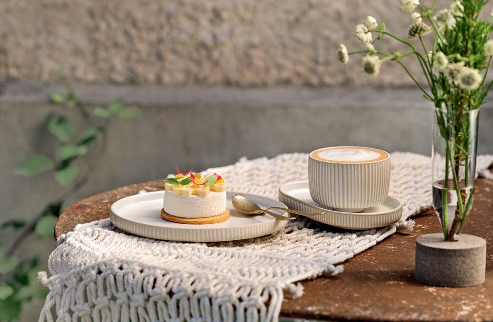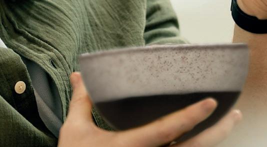 EYE-CATCHER. Die RENEW-Kollektion vereint Ton mit recyceltem keramischem Material. Außen matt für ein softes Feeling und innen glasiert für Food-Präsentationen auf einer hygienischen Oberfläche.