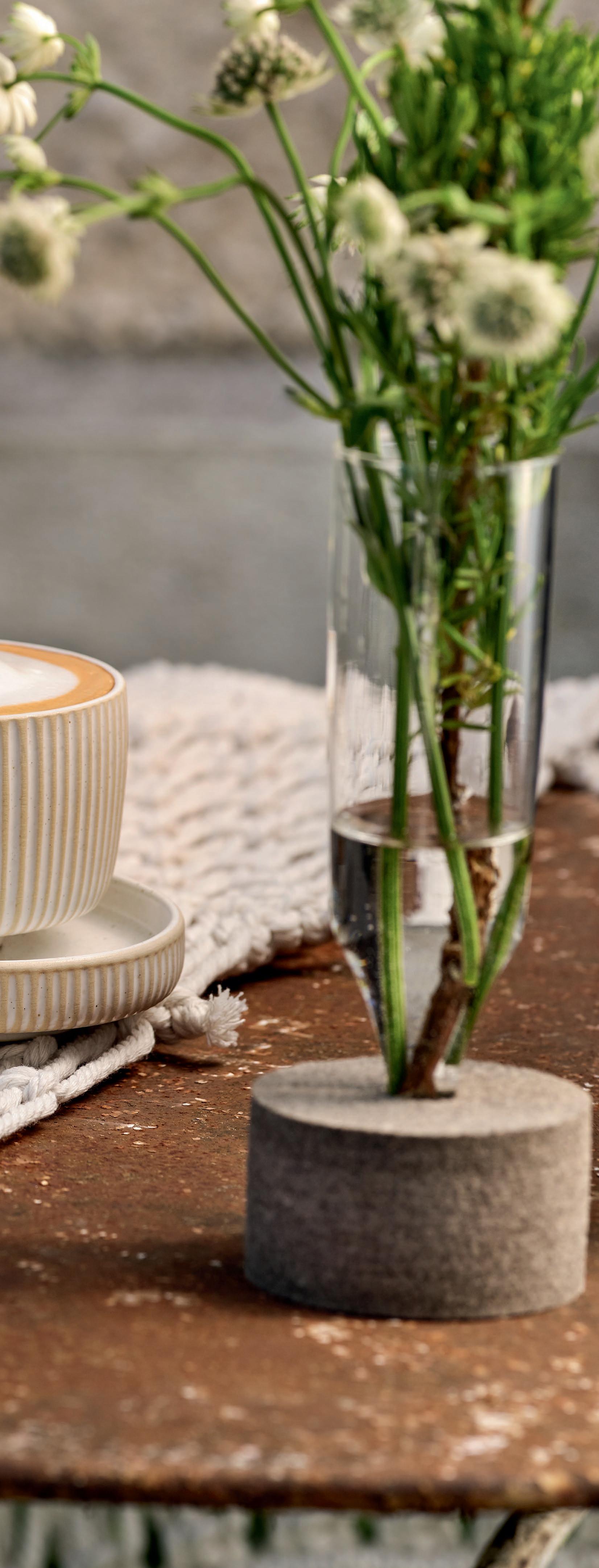 NORDIC SUMMER. Die zart weiße Glasur verpasst dem Steinzeug-Besteller NARA ein komplettes Umstyling. Der softe Look lässt das charakteristische Relief besonders schön hervortreten. Passend dazu: die schlanke Glasvase mit Filzsockel.