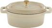 Töpfe und Pfannen aus emailliertem Gusseisen sind auf allen Herdarten einsetzbar, aber nicht mikrowellengeeignet.
