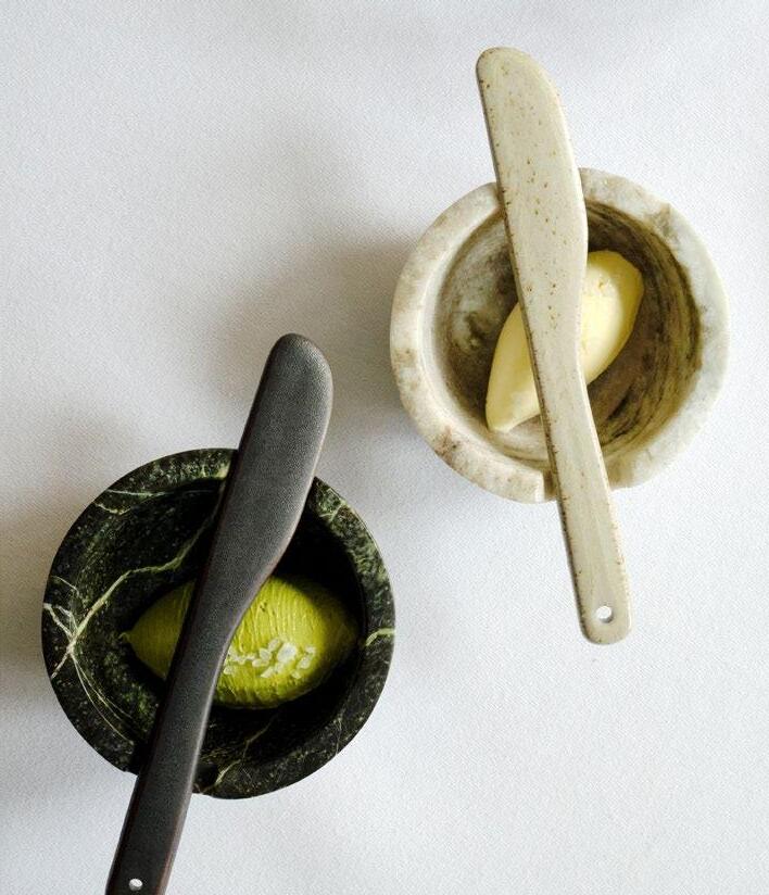 Bitte beachten Sie, dass Lebensmittel mit einem hohen Säuregehalt (v.a. Fruchtsäure/ Zitronensäure) bei längerem Kontakt die Oberfläche des Steins angreifen können. Weiterhin können färbende Lebensmittel, wie Safran oder Curry, auf den Produkten platziert, zu Verfärbungen führen, die nicht mehr entfernt werden können.