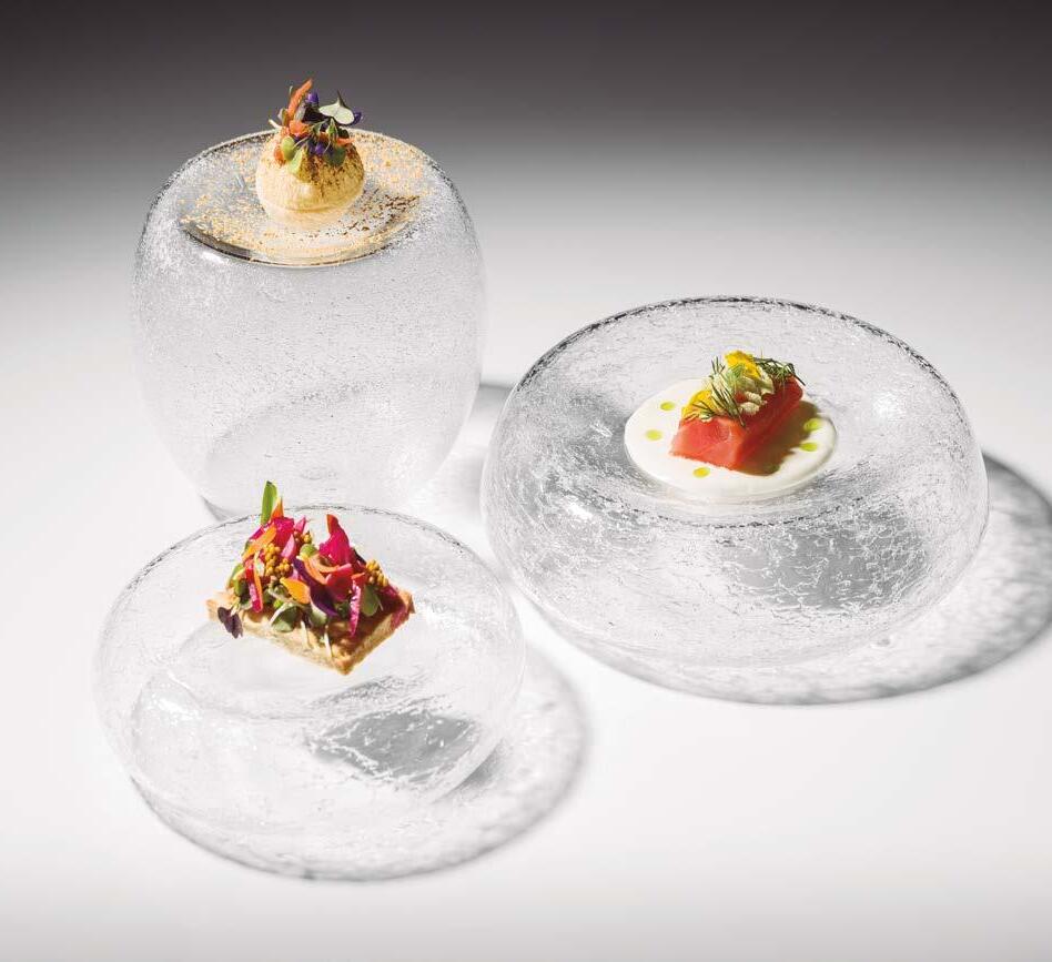 Fused at high temperatures for strength and durability, each piece is shaped through traditional craftsmanship, creating unique designs and textures. Color, form and transparency unite to elevate culinary presentation and unlock endless creative possibilities.