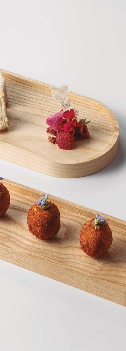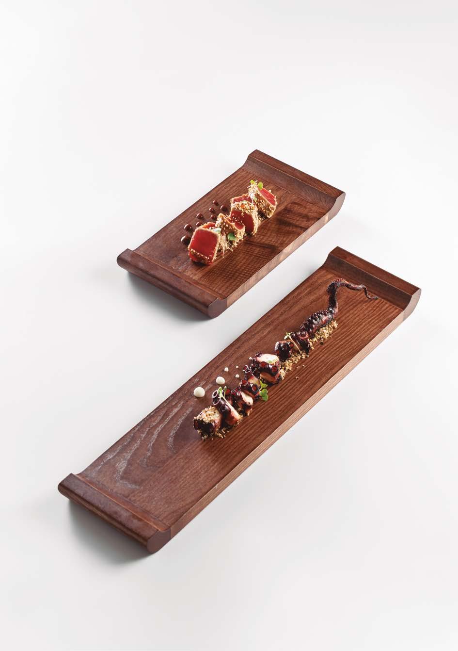 Handcrafted wooden plates and presentation pieces, shaped by expert hands from carefully selected wood and finished with food-grade varnish. Each piece preserves the natural identity of the material — unique, distinctive, and unmistakably Pordamsa.