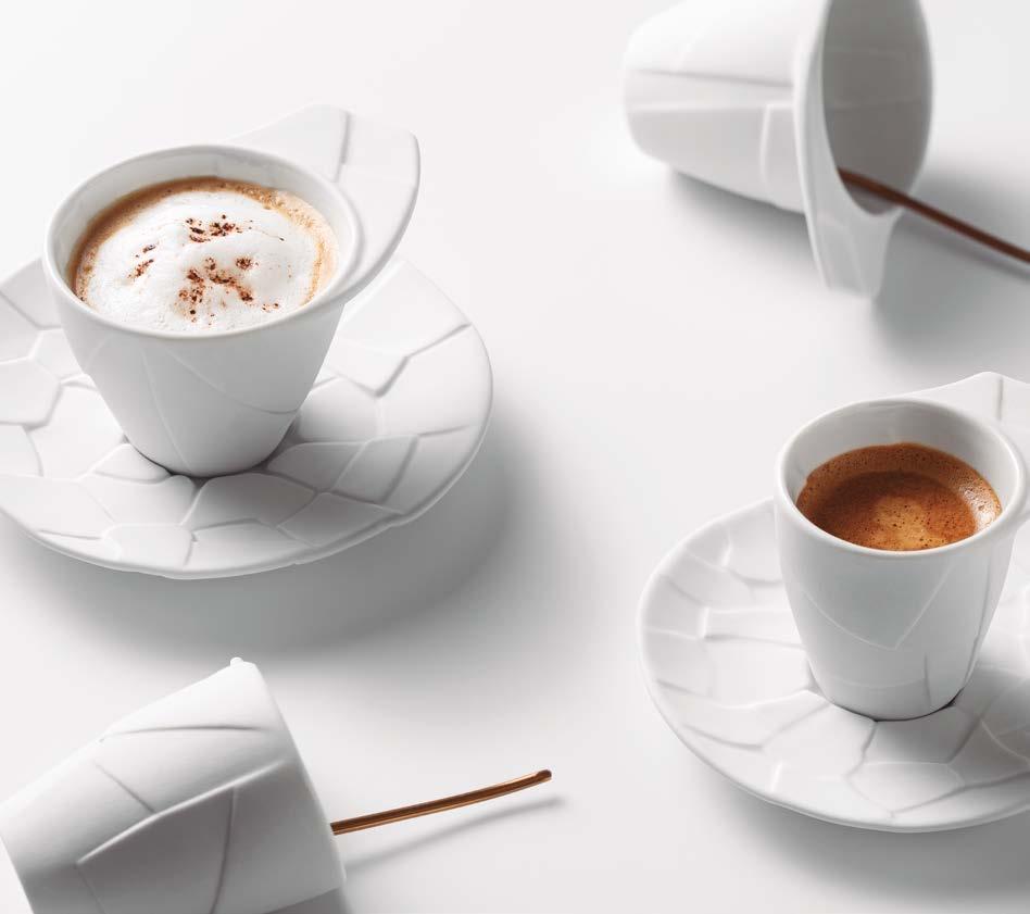We select the finest kaolin, quartz and feldspar to achieve a pure white porcelain. Entirely handmade by our expert artisans and fired at 1400ºC / 2552ºF, ensuring exceptional durability and meticulous attention to every detail. 100% human made. Also in contemporany black.