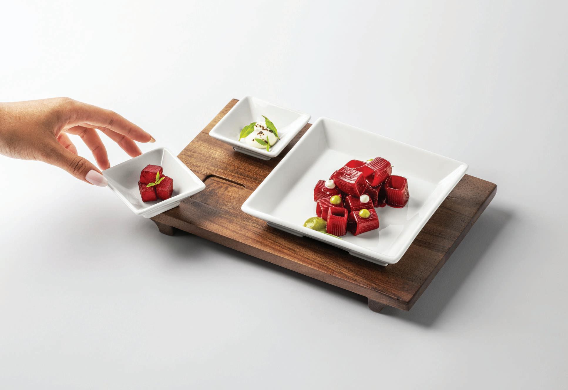 From the classic to the modern shapes, for your imagination and every gastronomic tecnique! The definition fine china historically identifies a robust and hard material, but at the same time thin and translucent. In the typical cream nuance of Moma collection, you can find shapes that become a must in the years, like the round rimmed plate, until modular and refined solutions suitable for the most contemporary and innovative culinary techniques.
