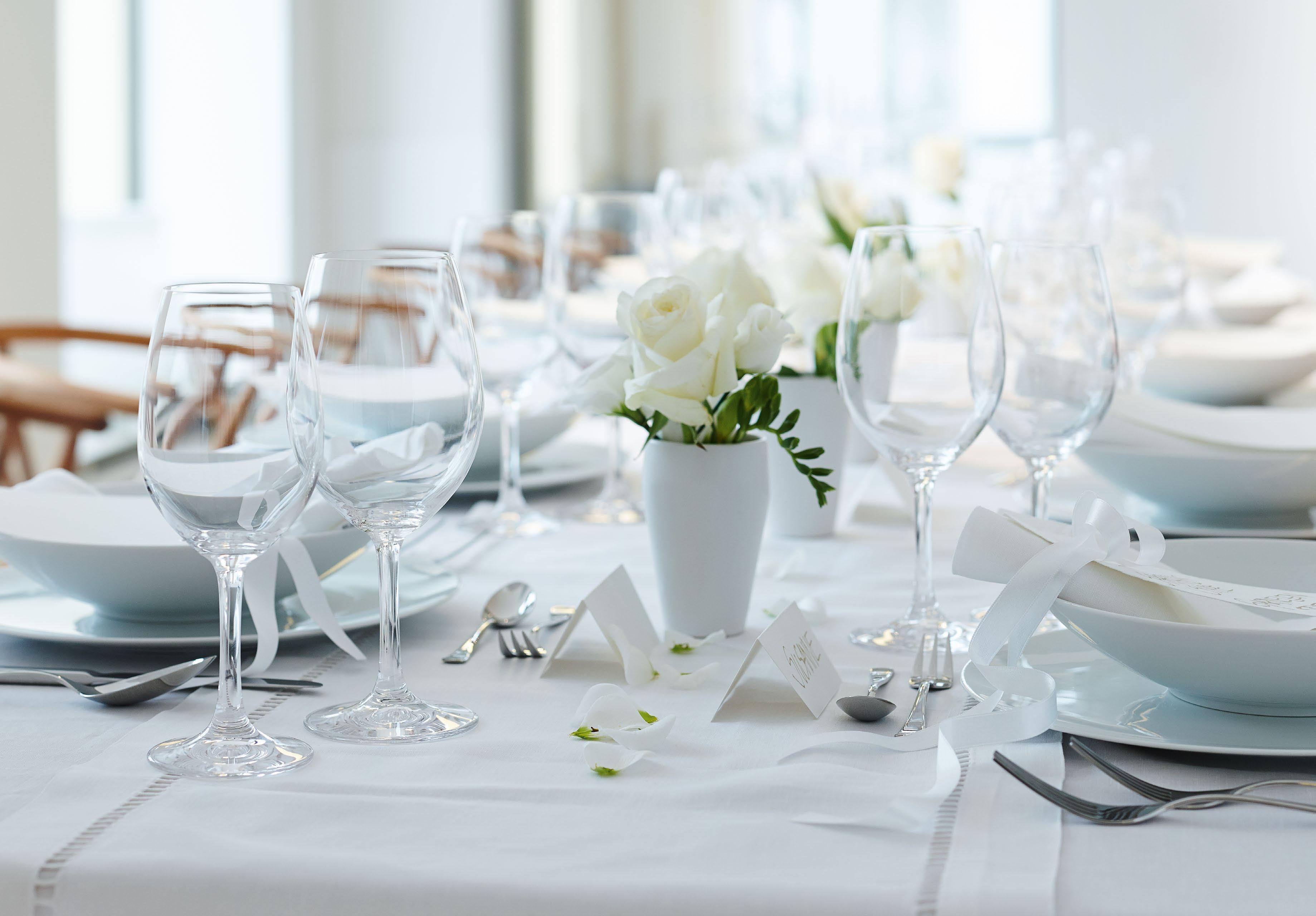Fill the glass only to the widest diameter of its bowl. This will ensure maximum development of the wine´s bouquet, and also provide the most elegant table setting.