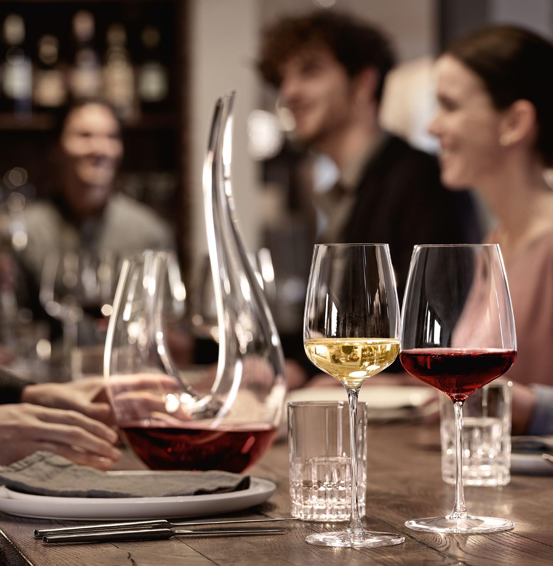 Spiegelau wine glasses are specially designed in collaboration with some of the world´s most respected sommeliers as well as owners of some of the world´s finest restaurants. In all aspects –shape, height, diameter of the bowl, etc. – Spiegelau glasses are crafted to deliver wine at its best for the greatest possible enjoyment. Each glass´s shape and size has been created with extreme attention to detail to fully enhance the character and bouquet of the wine. reach the wine than the bottle‘s does. Red wines should be decanted well before serving and allowed to rest at room temperature for up to one hour to allow the wine to fully develop its bouquet.