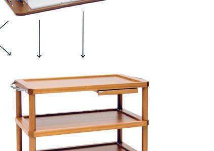 Simple and practical line. The trolleys are supplied disassembled with great savings in transport. Available in 4 colors, mahogany, walnut, wenge and rosewood.