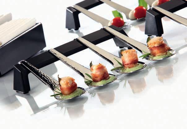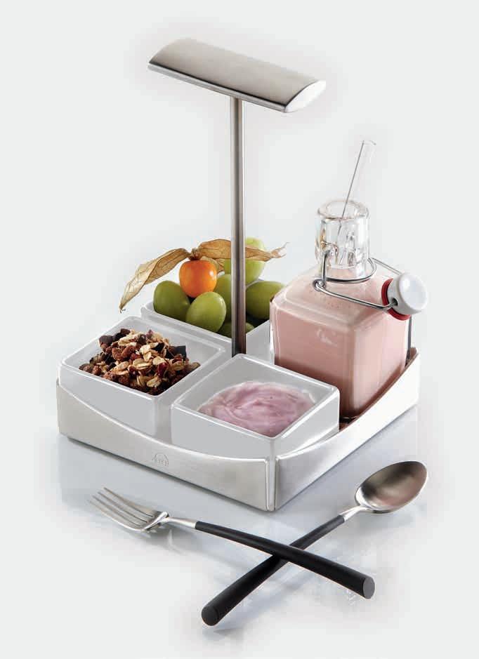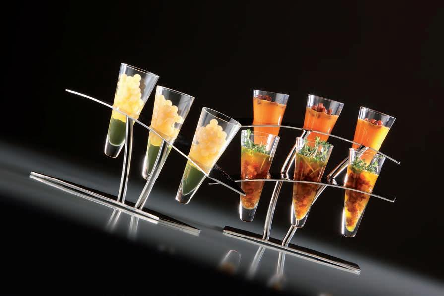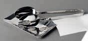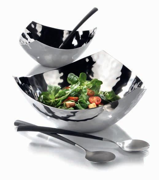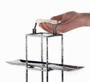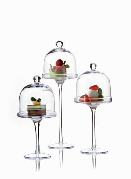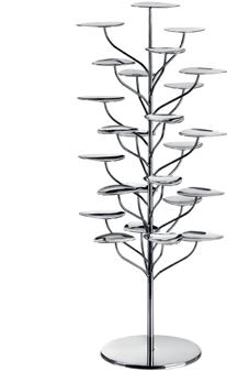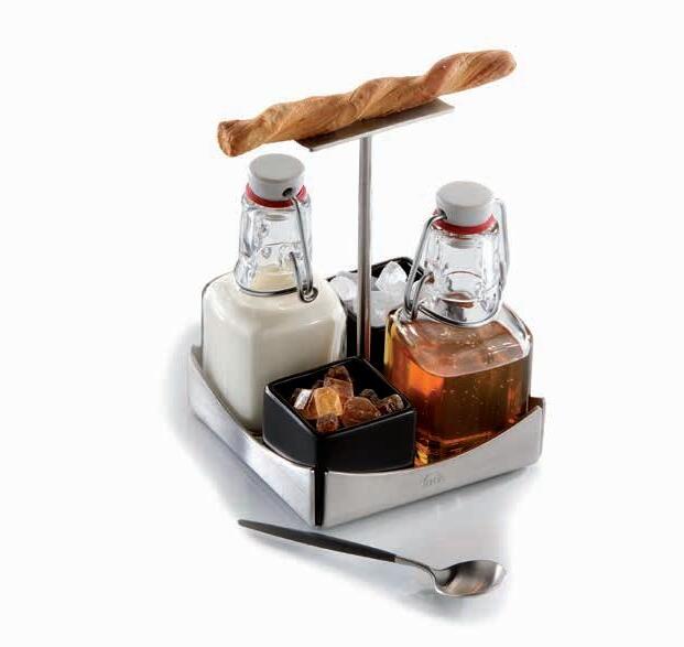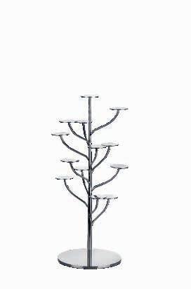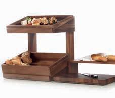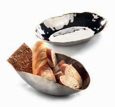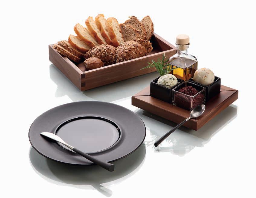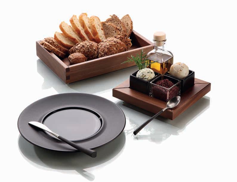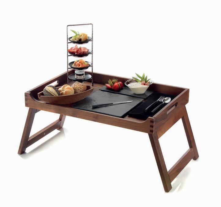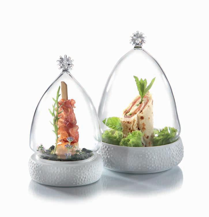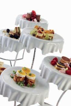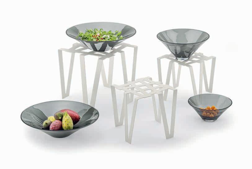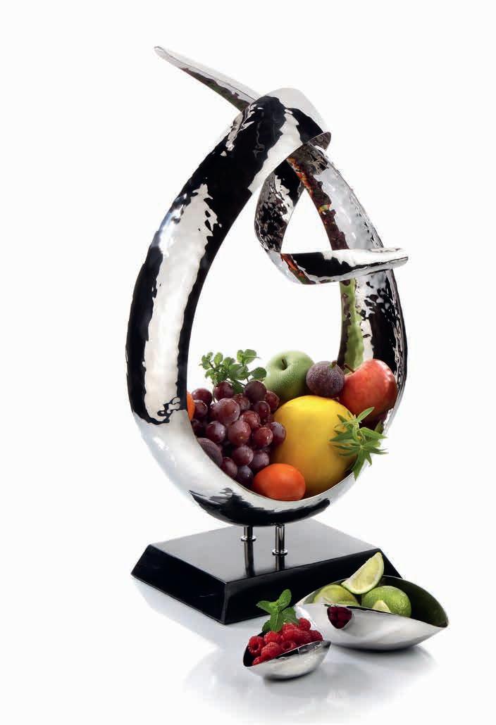 Die dreistufige Etagere aus gehämmertem, auf Hochglanz poliertem Edelstahl ist eine extravagante Basis für Teller und Platten aller Art. Auch auf dem Hotelzimmer lassen sich diese Etageren effektvoll platzieren. Mit „DressCoat“ oder anderem Geschirr bestückt, lassen sich schnell und einfach kleine Snacks, eine Auswahl an Obst oder auch ein süßer Willkommensgruß ansprechend inszenieren. Alle Informationen zu dieser Etagere finden Sie auf Seite 124.