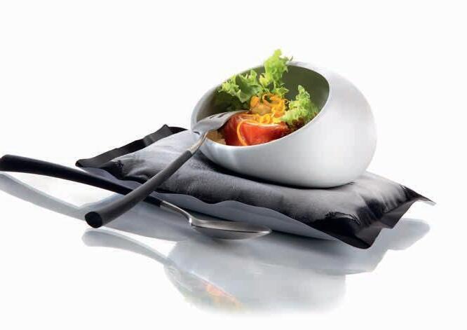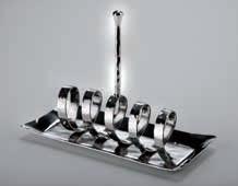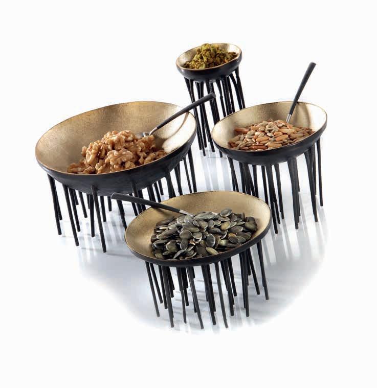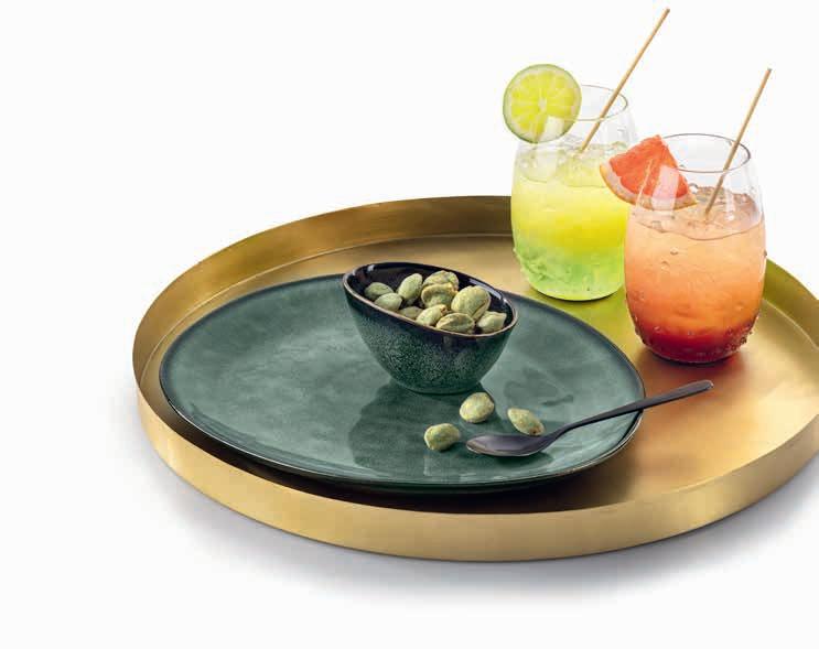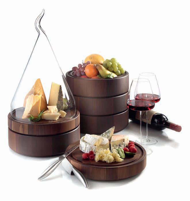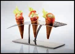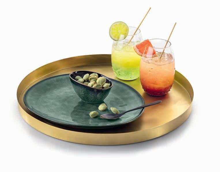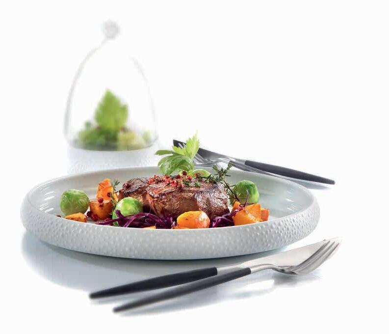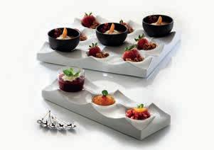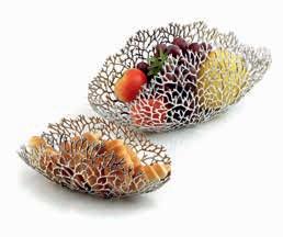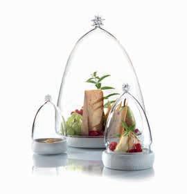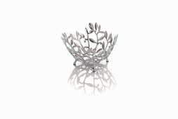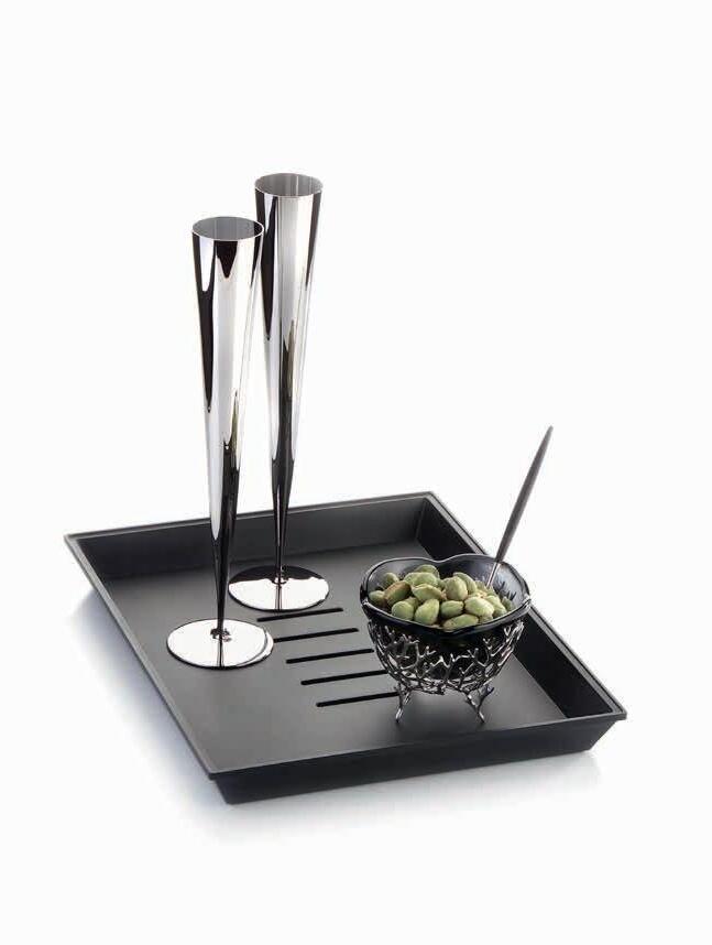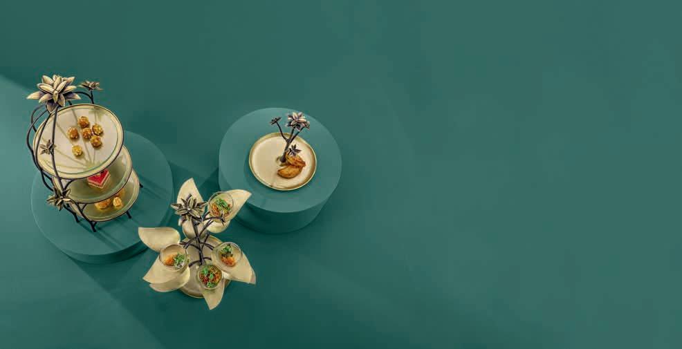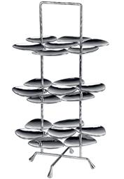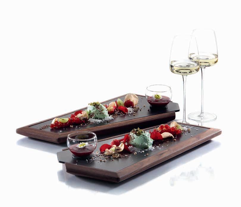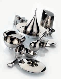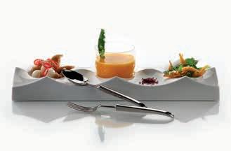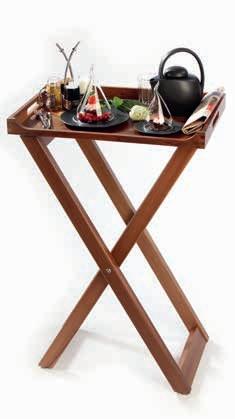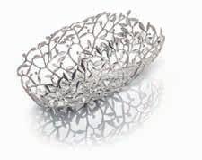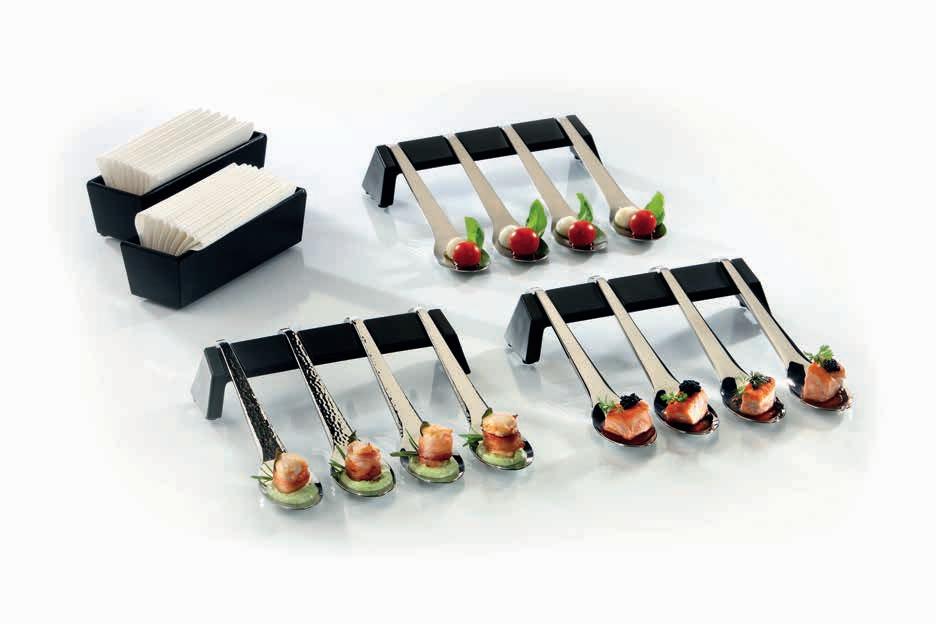 Die dreistufige Etagere aus gehämmertem, auf Hochglanz poliertem Edelstahl ist eine extravagante Basis für Teller und Platten aller Art. Auch auf dem Hotelzimmer lassen sich diese Etageren effektvoll platzieren. Mit „DressCoat“ oder anderem Geschirr bestückt, lassen sich schnell und einfach kleine Snacks, eine Auswahl an Obst oder auch ein süßer Willkommensgruß ansprechend inszenieren. Alle Informationen zu dieser Etagere finden Sie auf Seite 124.