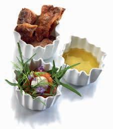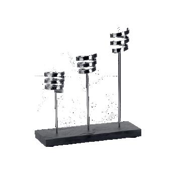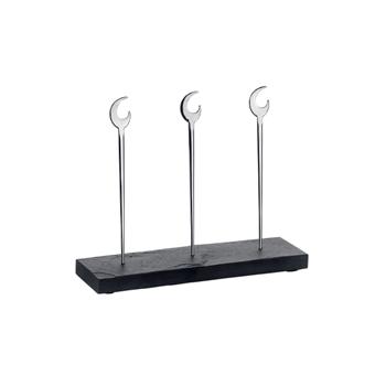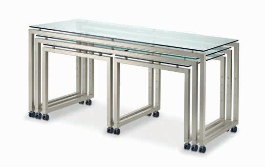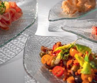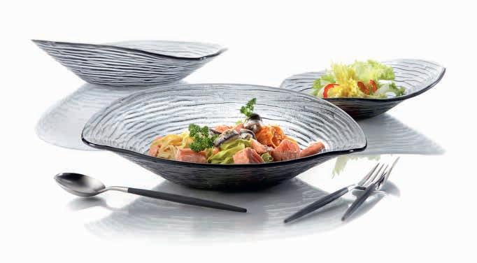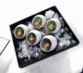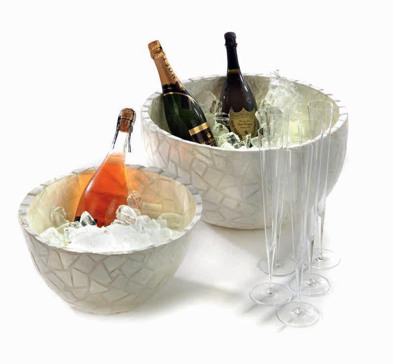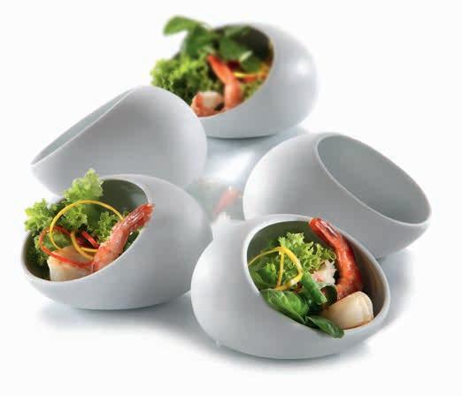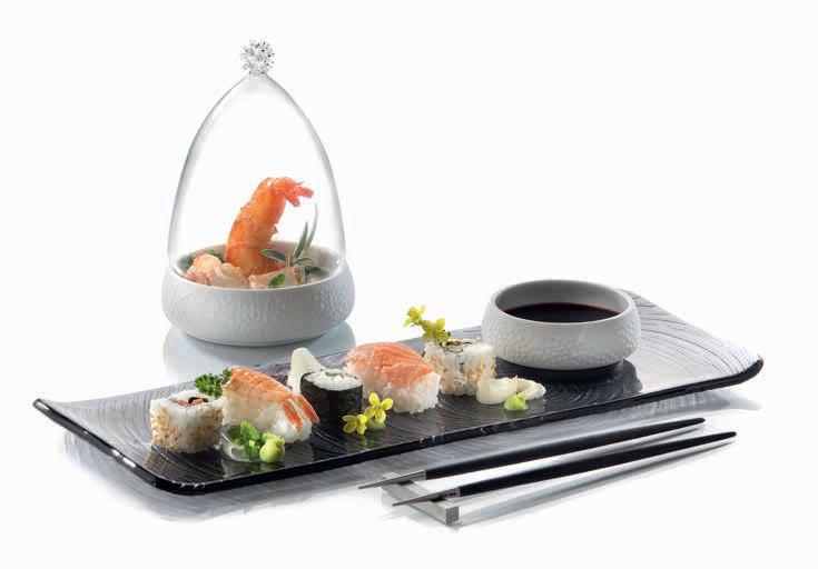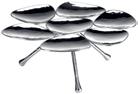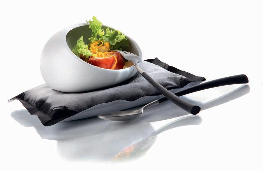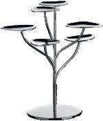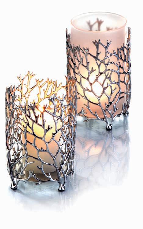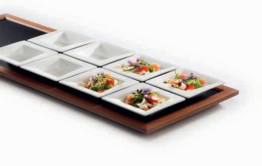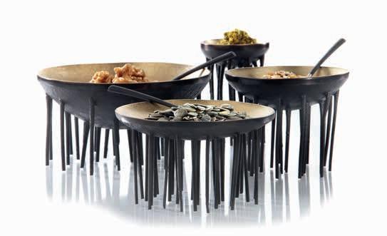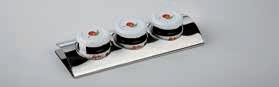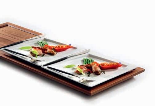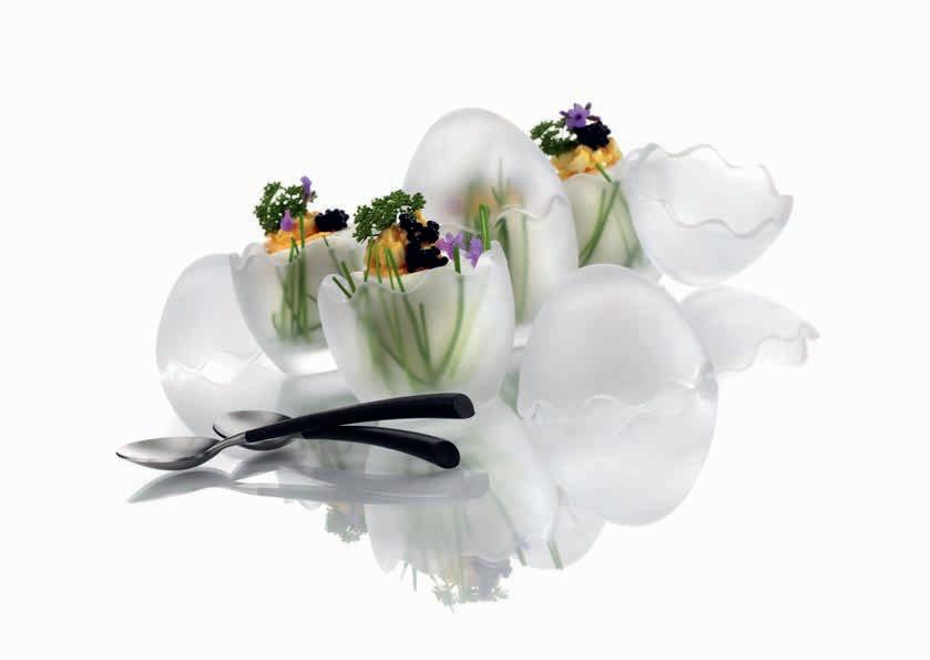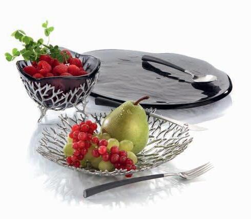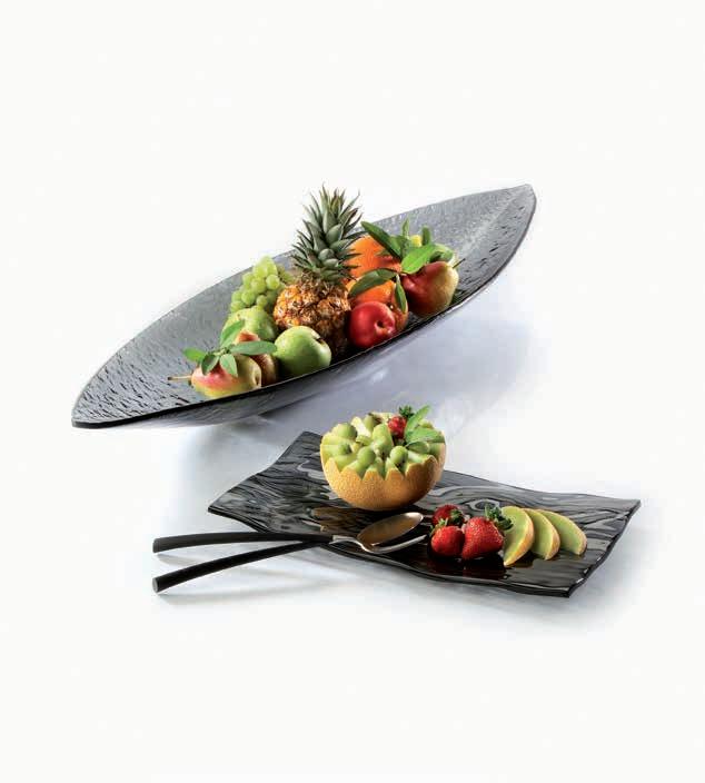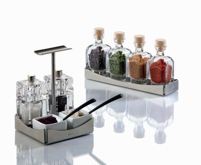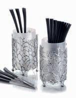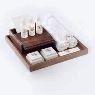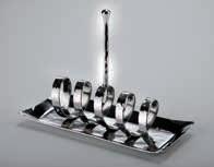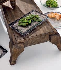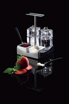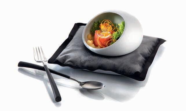 Die dreistufige Etagere aus gehämmertem, auf Hochglanz poliertem Edelstahl ist eine extravagante Basis für Teller und Platten aller Art. Auch auf dem Hotelzimmer lassen sich diese Etageren effektvoll platzieren. Mit „DressCoat“ oder anderem Geschirr bestückt, lassen sich schnell und einfach kleine Snacks, eine Auswahl an Obst oder auch ein süßer Willkommensgruß ansprechend inszenieren. Alle Informationen zu dieser Etagere finden Sie auf Seite 124.