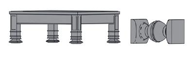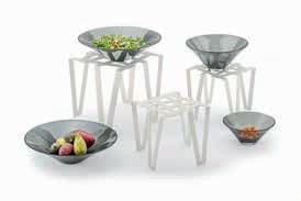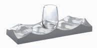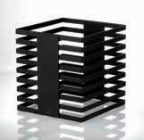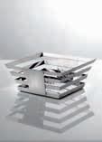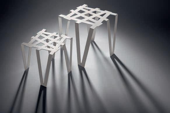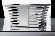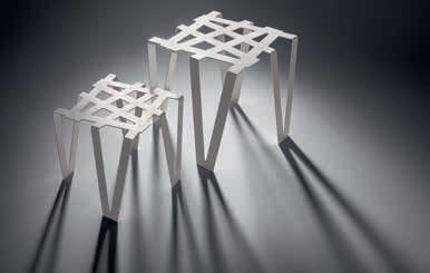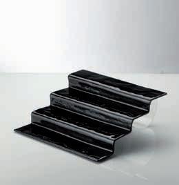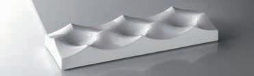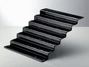 Die filigranen Displays „Edge“ des Mailänder Designers Itamar Harari ergänzen formal, aber auch funktional das Buffetregal „The Pantry“ sehr gut. Daher wurde bewusst die gleiche Oberflächenveredelung gewählt. Die Displays sind aus einem massiven Stück Stahlblech gelasert und anschließend gekantet. Keine Schweißnähte oder sonstige Verbindungen stören die Gestaltung. Die mattweiße Pulverbeschichtung mit feiner Oberflächenstruktur schützt das Material und ist überaus robust. „Edge“ schafft schnell und flexibel zusätzliche Ebenen am Buffet, das luftige und durchbrochene Design der Flächen verleihen diesen Displays eine einzigartige Leichtigkeit. Sie sind in den Höhen 24 und 32 cm verfügbar und daher mit zahlreichen anderen Zieher Systemen kombinierbar. Eine Übersicht der Systemhöhen und der verfügbaren Serien des „Zieher Systems“ finden sie auf Seite 51.