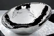 iSchale „Flora“ massiver Edelstahl 18/10, rund, gehämmert, poliert, mit Kugelfüßen