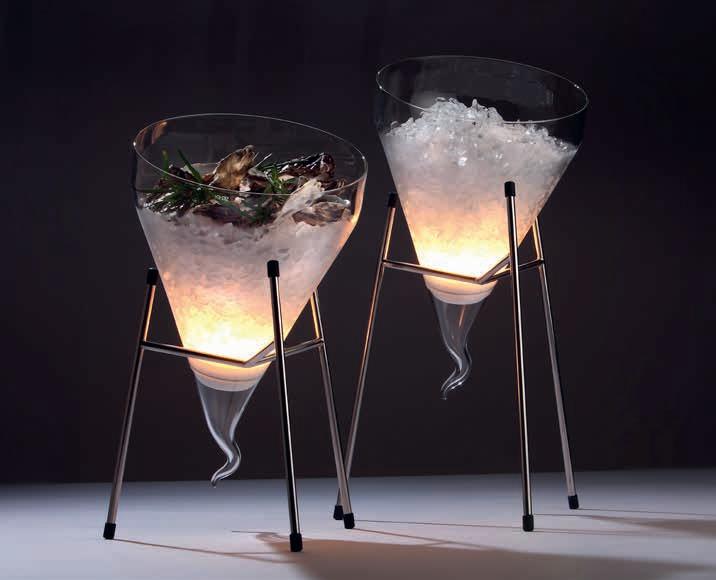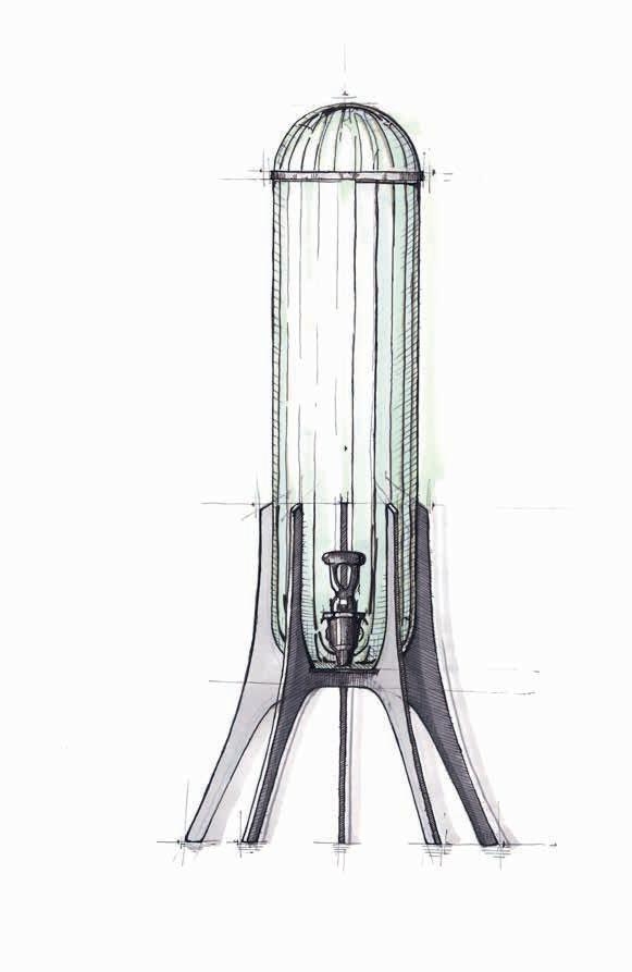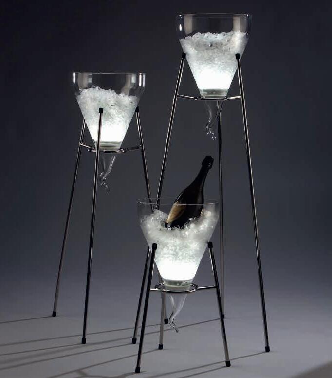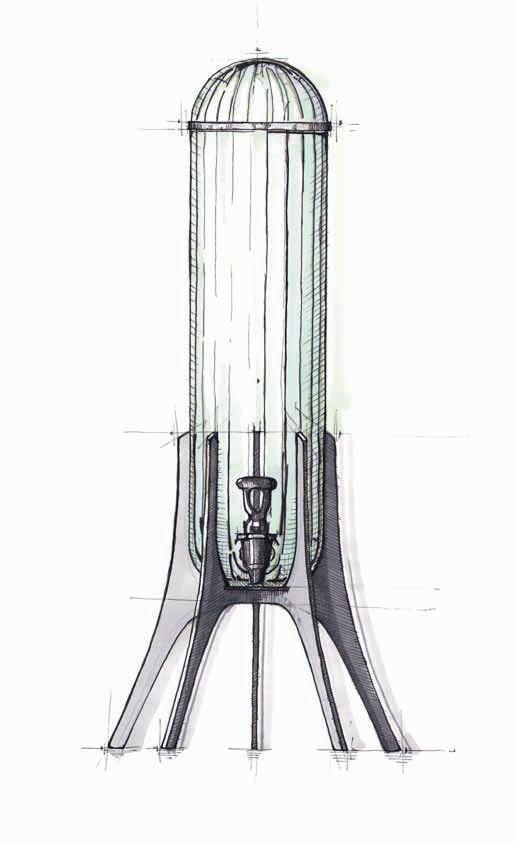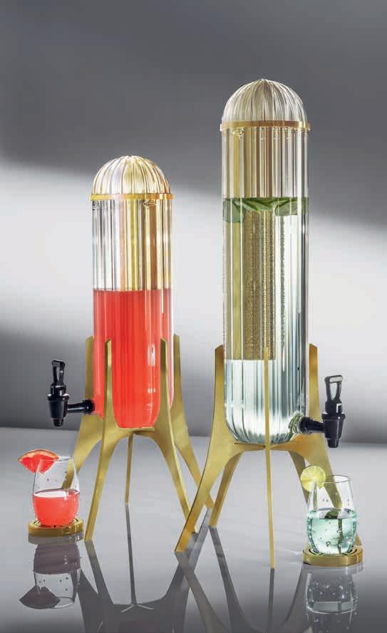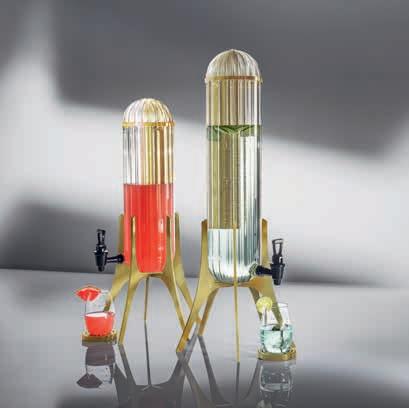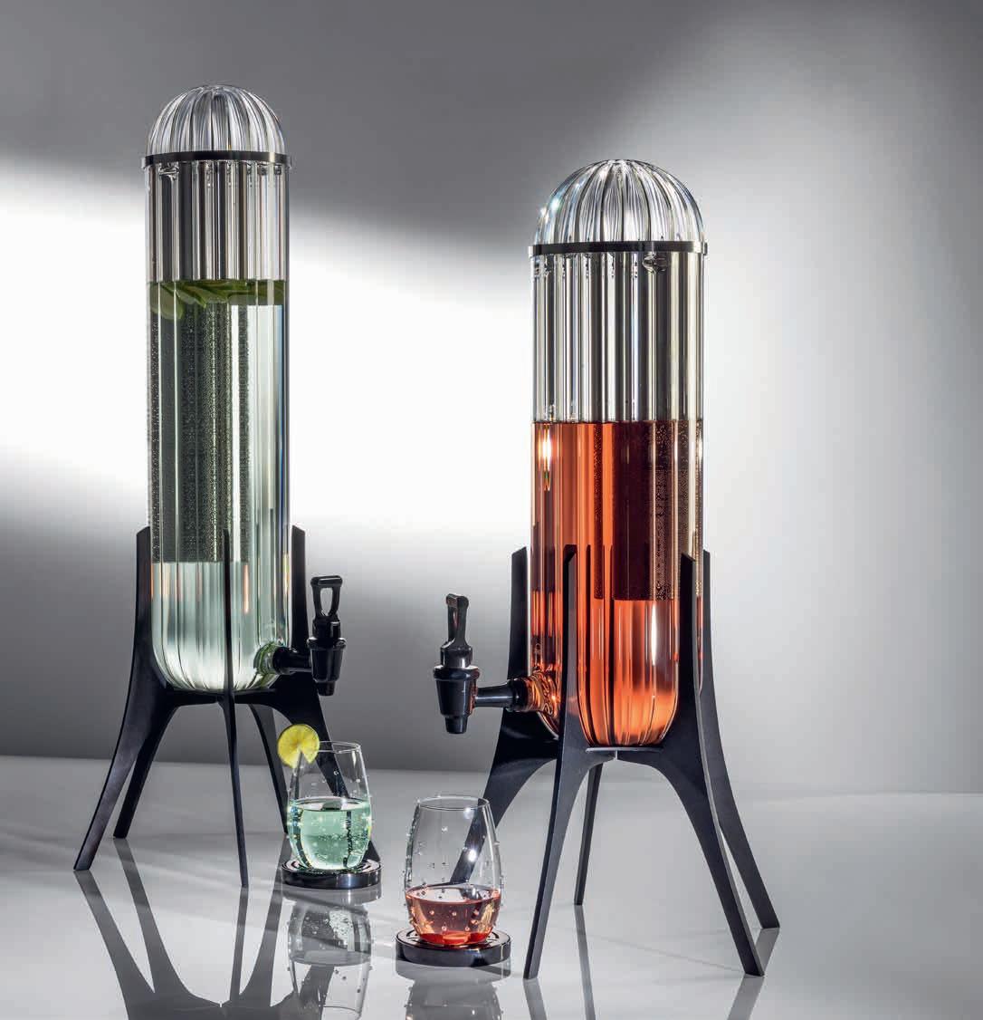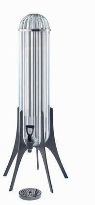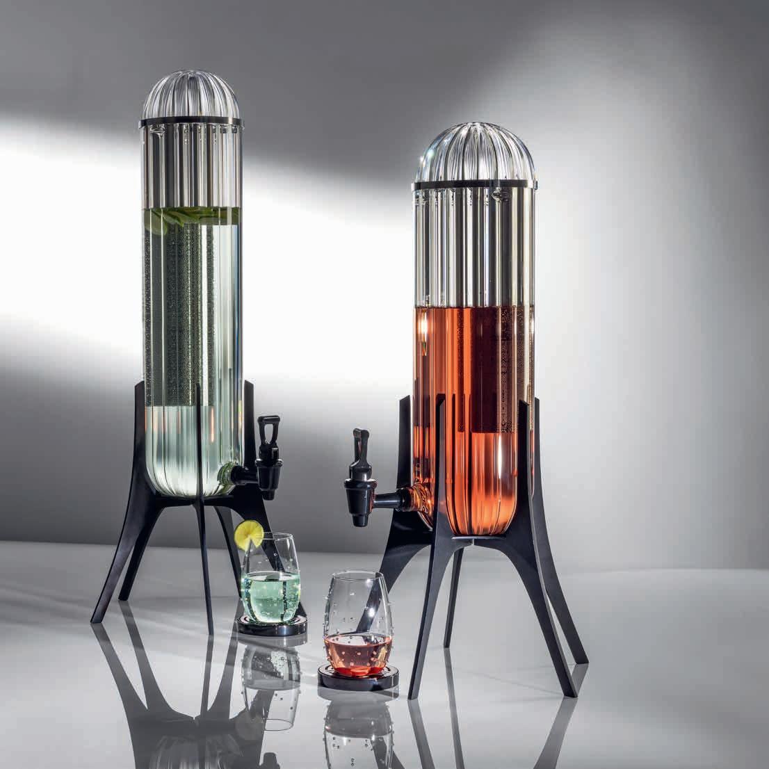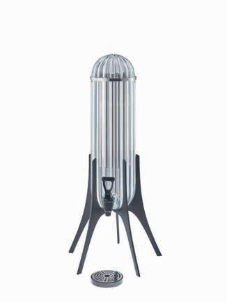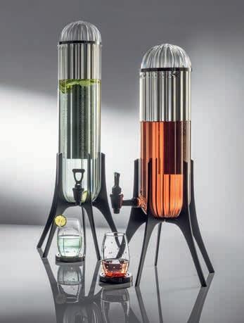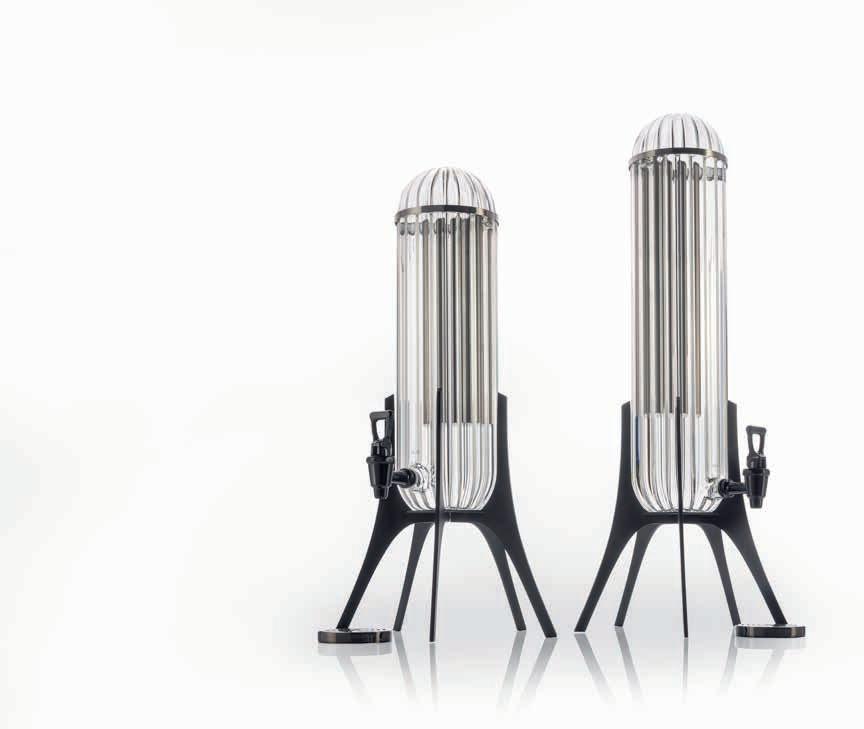 Für eine gleichmäßige Kühlung sorgt die integrierte Eisröhre aus Edelstahl, die Getränke frisch hält, ohne deren Geschmack zu verfälschen. Gleichzeitig bildet sie die Fassung des halbrunden Deckels, der Form und Material des Glaszylinders aufgreift und dadurch einen ästhetischen und zugleich hygienischen Abschluss des „Vitron“-Dispensers bildet. Ergänzt wird das Angebot durch eine passgenaue Tropfschale aus schwarz- oder gold-beschichtetem Edelstahl, die langlebig, widerstandsfähig und spülmaschinengeeignet ist.