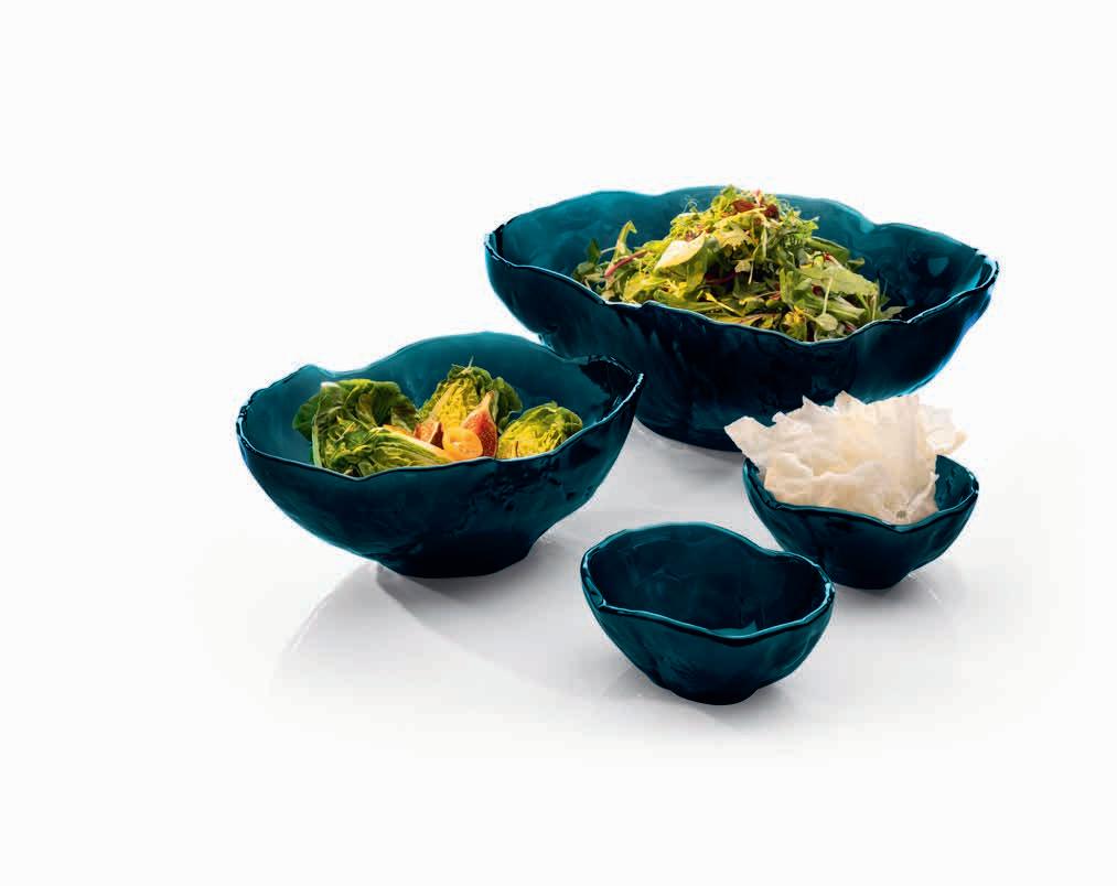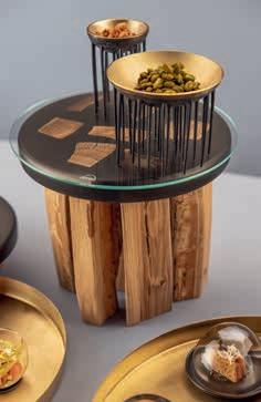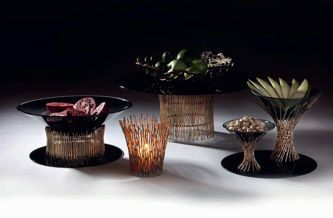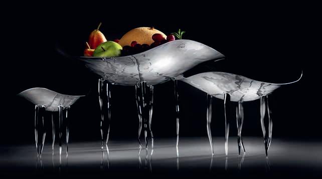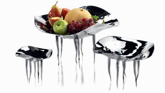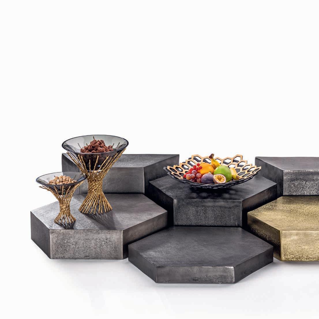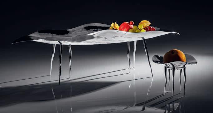 Die organischen Formen dieser außergewöhnlichen Objekte bieten die ideale Präsentationsfläche für anspruchsvoll inszenierte Zwischengänge oder eine extravagante Ablagefläche für allerlei Kleinigkeiten des Alltags.