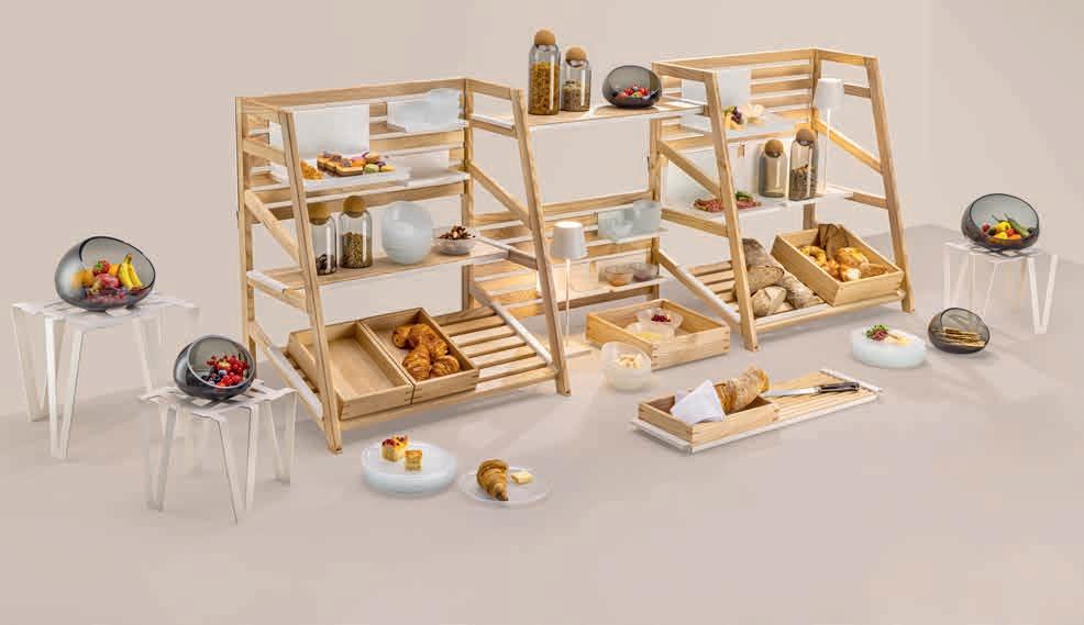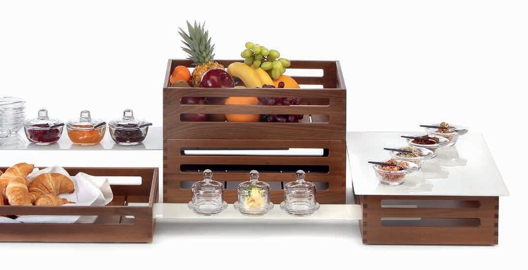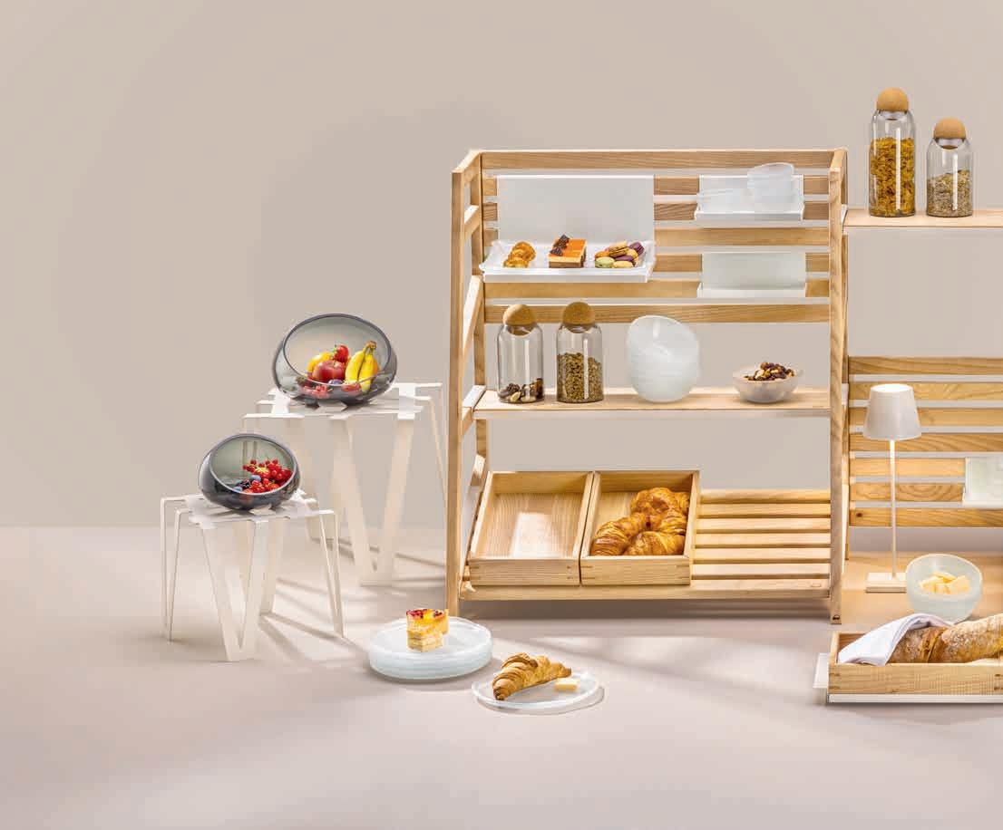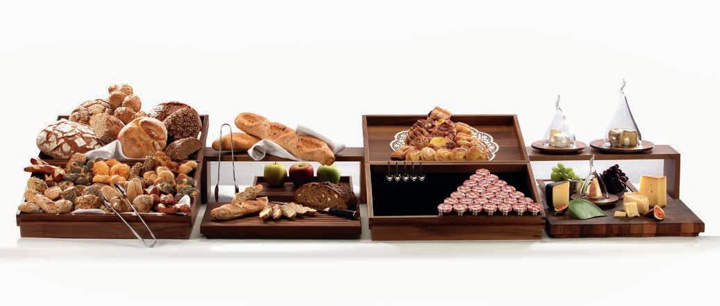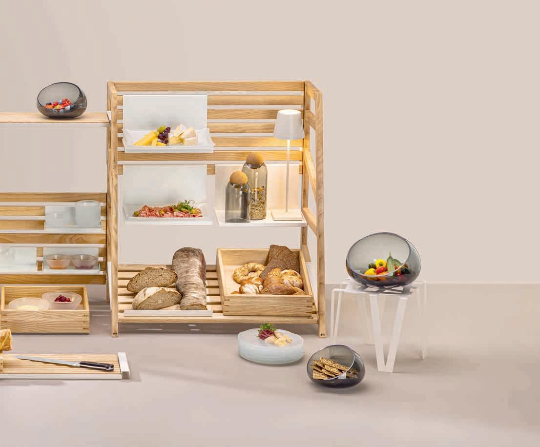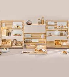 „The Pantry“ ist mehr als nur ein Buffetsystem – es ist eine elegante und funktionale Lösung zur Präsentation von Brot, Gebäck, Früchten und weiteren Leckereien beim Frühstück oder Abendessen im Hotel. Dank der flexiblen Einsatzmöglichkeiten und des schnellen Auf- und Abbaus eignet sich das System ebenso für Tagungen, Coffee-Breaks, Veranstaltungen oder beim Catering außer Haus.
