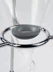 Ein umlaufender Ring verbindet Zylinder und Deckel und fungiert als Fassung für beide Elemente, die optisch und formal eine Einheit bilden. Lediglich eine kleine Belüftungskerbe im Rand des Deckels unterbricht diese Form und sorgt für einen gleichmäßigen Auslauf der Getränke.