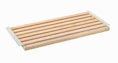 Wird das Leistenboard als Zwischenboden eingesetzt, können darauf die Eschenholz-Boxen, die in zwei Größen erhältlich sind, exakt und rutschsicher positioniert werden. Der präzise abgestimmte Leistenabstand und die Stellfüße der Boxen garantieren auch bei geneigter Positionierung einen stabilen Halt. Ein eingehängter Stopper verhindert, dass Brot oder Baguettes von der Ablage rutschen. Durch den Abstand der Leisten wird zudem eine optimale Luftzirkulation gewährleistet, die dazu beiträgt, dass frische Backwaren länger knusprig und kross bleiben.