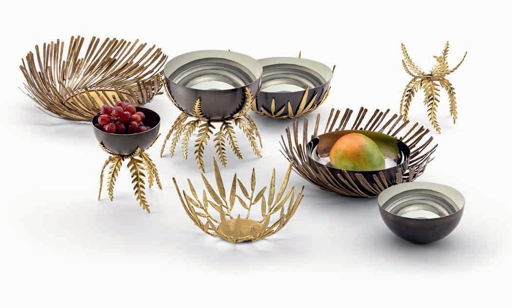 Ablagen und Etageren „Flora“, „Fleur Déco“, „Orea“ und „Orbis“, „DressCoat“, „DryPod“ Messingkörbe- und schalen „Roots“, „Matrix“, „Bosco“, „Covo“ und „Fronda“