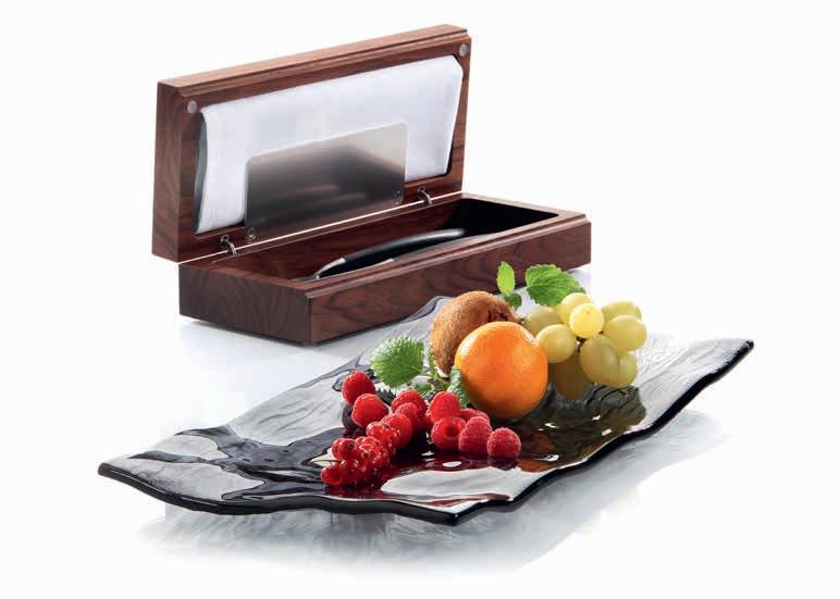 Der ebenso erhältliche Glasdeckel aus grau getöntem Glas setzt das Präsentierte eindrucksvoll in Szene.