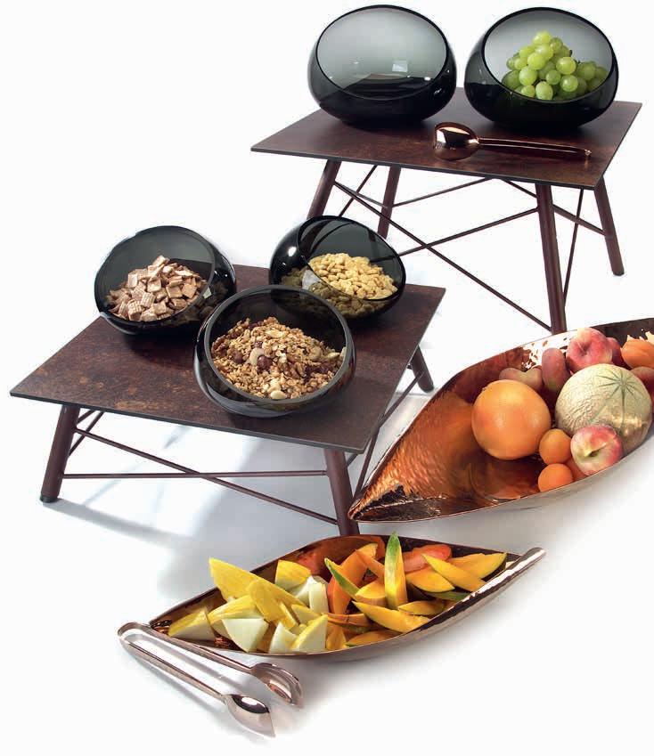 Displays, Etageren und Schalen aus Messing und Edelstahl, Jam-Trays und Food Displays