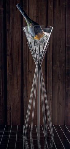 Die Eisröhre ist aus solidem Edelstahl gefertigt und je nach Version in mattem Finish oder goldfarben veredelt. Sie sorgt – durch die Befüllung mit Eis – für zuverlässig gekühlte Getränke. Das dicke Material trägt dazu bei, die Kühlwirkung zu verlängern; gleichzeitig wird der unvermeidliche Auftrieb durch das Eigengewicht auch ohne Eis deutlich reduziert. Zwei Zapfen im Oberteil greifen durch eine leichte Drehung zuverlässig in passende Kerben im Glas, sodass der Einsatz immer in der richtigen Position verbleibt.