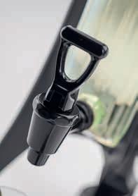 Der tropffreie Hahn verfügt über eine selbstschließende Zapfposition sowie eine Auslaufposition, sodass der Dispenser zur erleichterten Entleerung und Reinigung schnell abgelassen werden kann. Hochwertige Dichtungen im Inneren vermeiden ein Nachtropfen zuverlässig.
