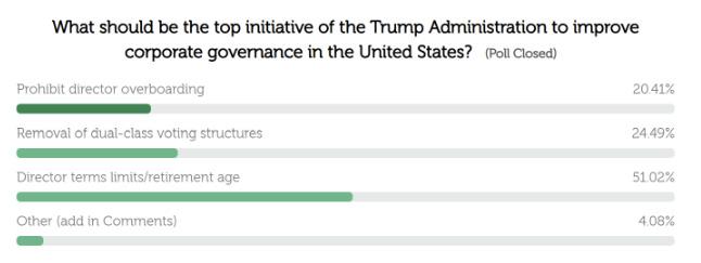 This month’s lead article, “Potential Corporate Governance Initiatives in the Trump Administration,” explores the possible governance priorities of the incoming administration� As a new era begins in Washington, D�C�, understanding potential shifts in corporate governance regulations and practices is essential for boards seeking to stay ahead From the influence of Elon Musk to thoughts shared from our community in our weekly polls, this article provides a few educated guesses on what might lie ahead for corporate boards�
