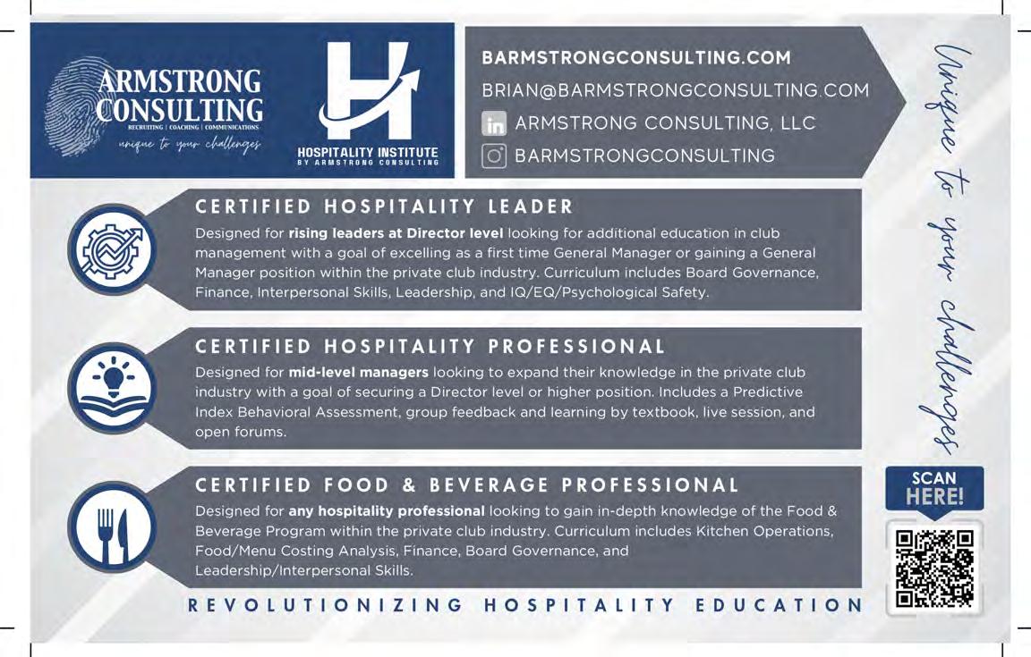 “While loyalty undoubtedly plays a role, a comprehensive strategy encompasses several vital components. This includes ensuring competitive compensation and benefits, facilitating avenues for career advancement, cultivating a positive workplace atmosphere, acknowledging and valuing employee contributions, actively seeking feedback, and nurturing a cohesive company culture. By addressing these facets, private clubs can effectively cultivate an environment that fosters enduring commitment and loyalty among their workforce,” said Morris.