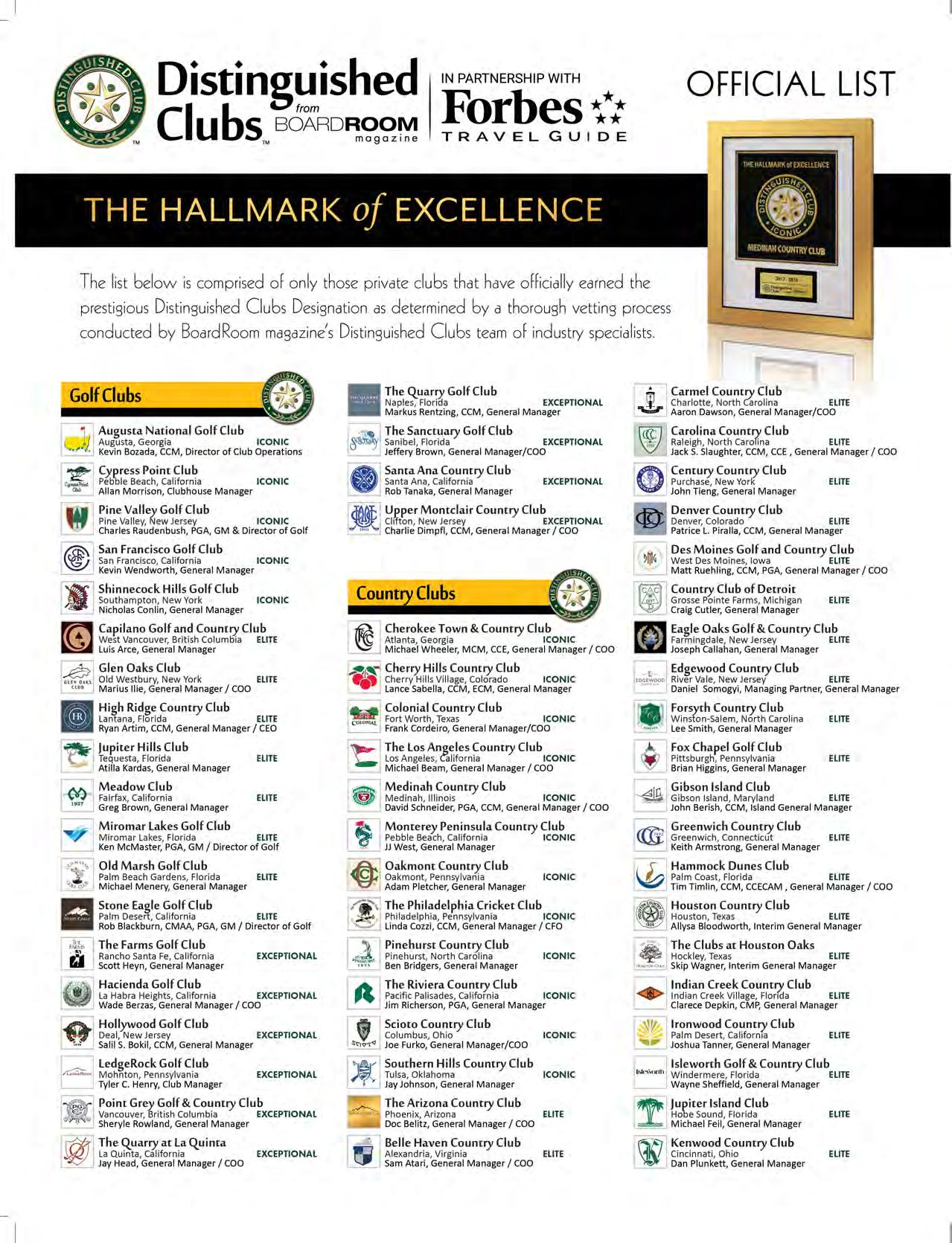 BoardRoommagazine’sDistinguishedClubsand DistinguishedGolf Destinations are making their mark on the worldwide private club industry.