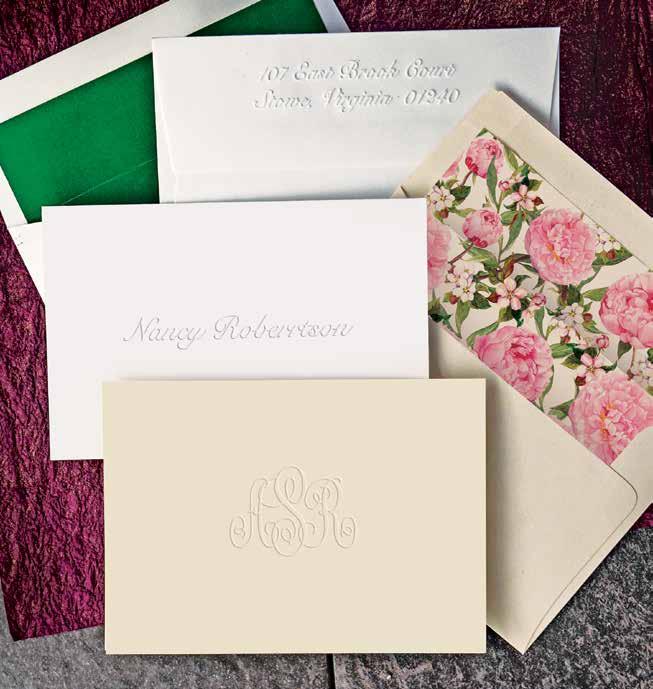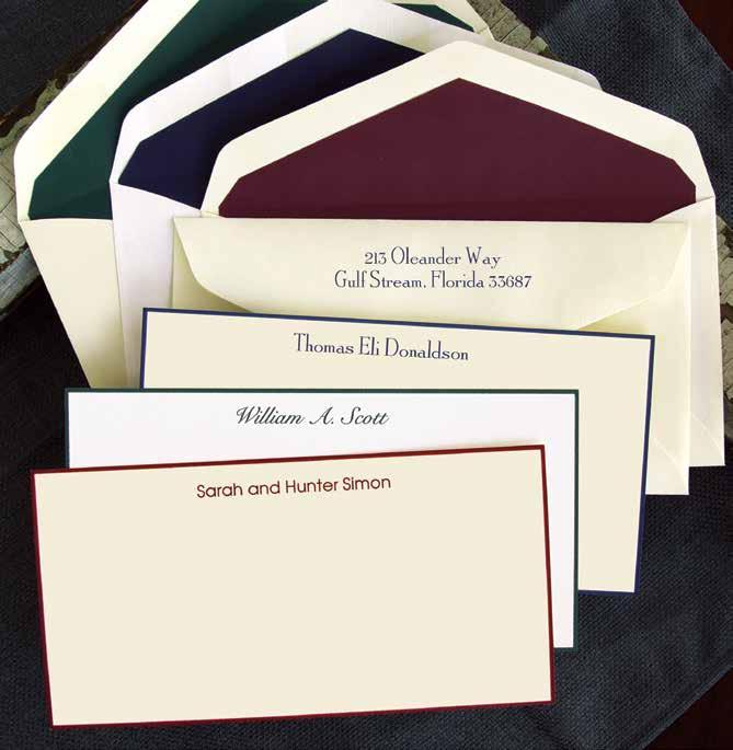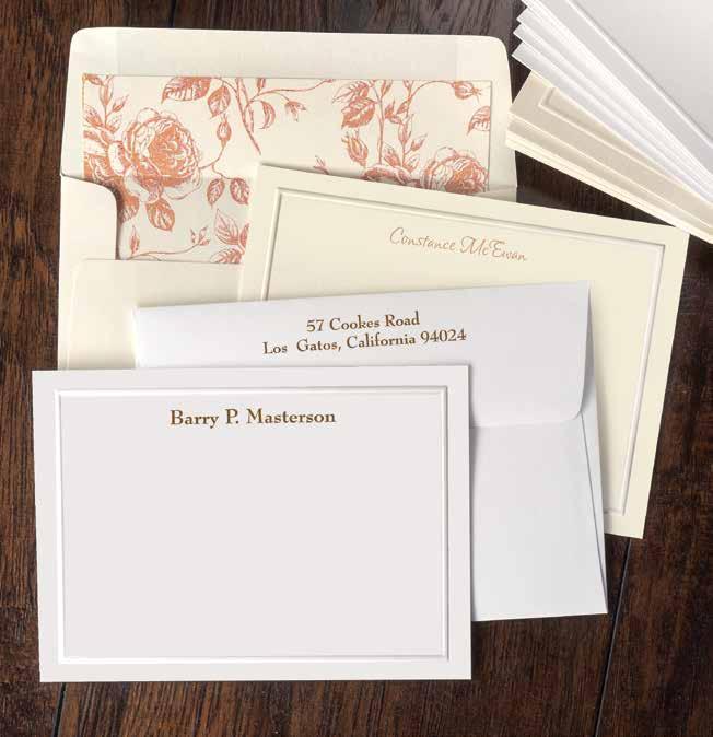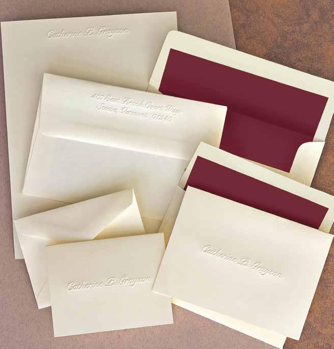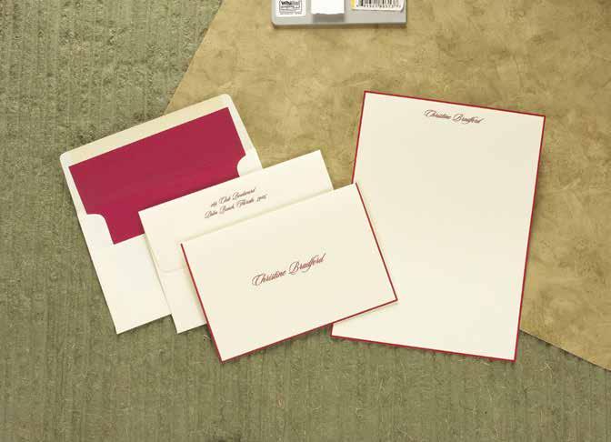 Ordering Information 4-5 Dealer Guidelines 6-7 Fonts & Monograms 8-19 Envelope Linings 20-21 Raised Ink Colors 22 Matte Ink & Foil Colors 23 Letterpress Ink Colors 24 Gift Boxes 24 Motifs 25-28 HAND BORDERED STATIONERY Hand Bordered 29-61 Hand Bordered Assortments 62-63 Wide Hand Bordered 64-73 Double Hand Bordered 74-79 Round Corner Hand Border 80-81 Double Thick Hand Bordered 82-83 Slender Hand Bordereed 84-85 Ensembles 86-87 Foldnotes 88 Sheets 89 CLASSIC STATIONERY Correspondence Cards 91-101 Foldnotes & Informals 102-108 Ensembles 109 Gift Enclosures 110 Rounded Mini-Notes 111 Specialty Papers 112-117 Digital Collection 118-121 Foil Options 122-123 Letterpress Options 124-127 Social Stationery 128-129 Business Stationery 130-131 Ensembles 132-133 Billpayer Envelopes 134-135 Self Seal Envelopes 136