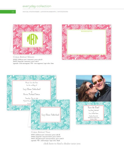 Coral Repeat Melon 24322 | foldover note | stationery: price code H 24413 | large flat | stationery: price code I typestyle: circle monogram | #43 - new engravers | type color: lime
