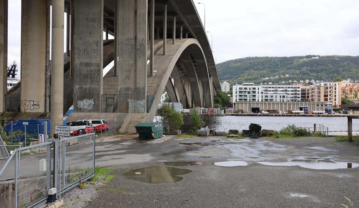 GRUSPLASS: Slik ser tomten mellom Damsgårdsveien og Puddefjorden ut i dag.