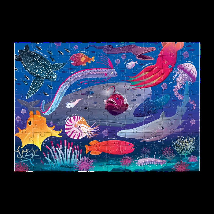 Visitthemagicalworldofglow-in-the-dark puzzles Afteryouputtogether100pieces,turn outthelightstoseethepuzzleglow!