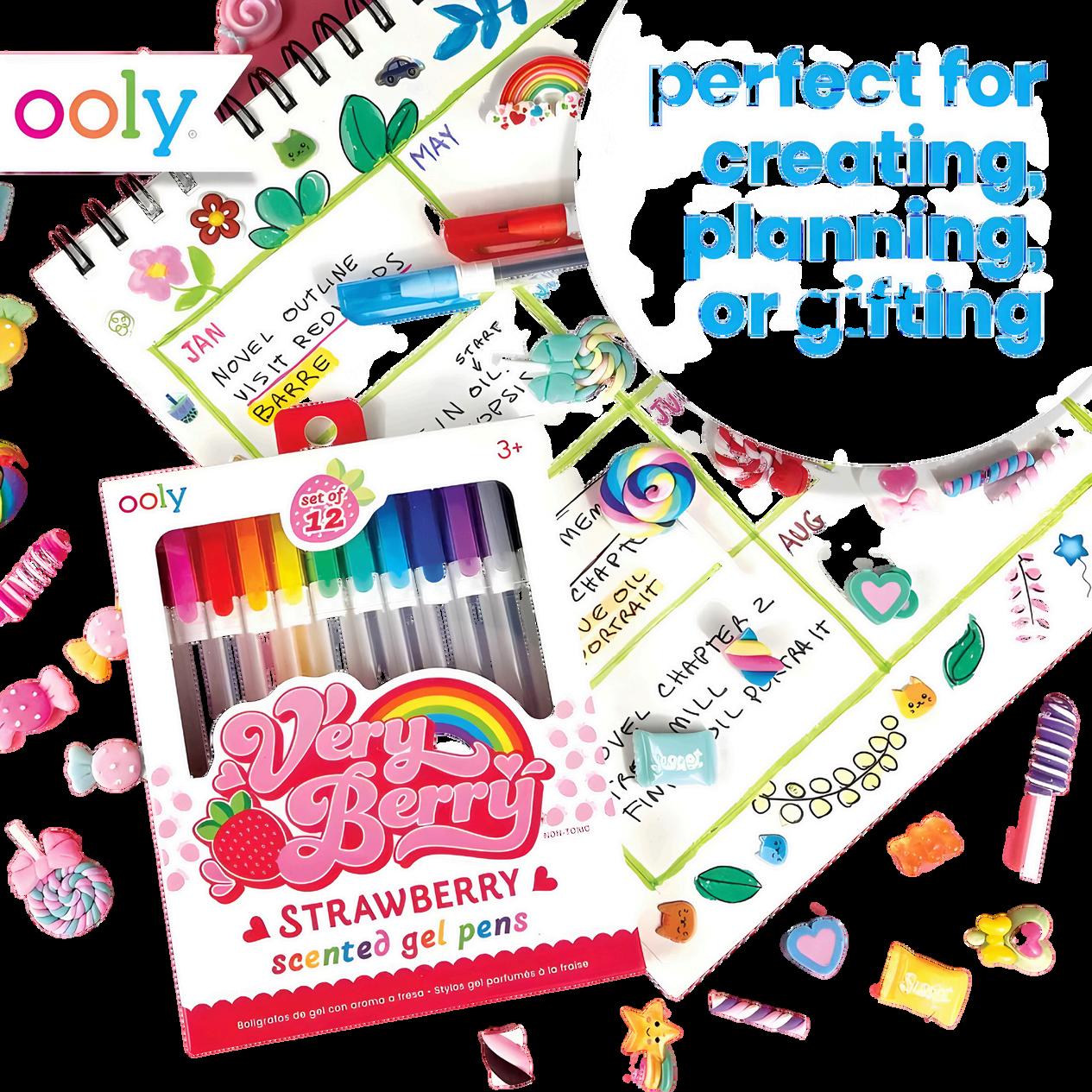 Set of 12 strawberry scented gel pens in variety of vibrant hues Writes with smooth gel feel