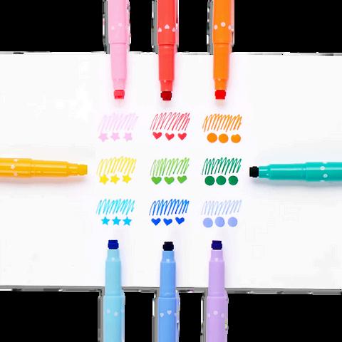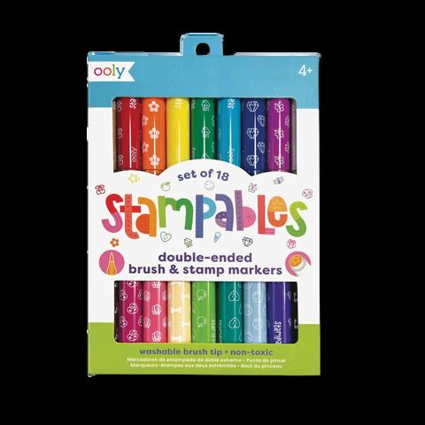 Setof18double-endedwashablemarkers Brushtips&18differentstampends Unscentedinksandreusabletravelcase