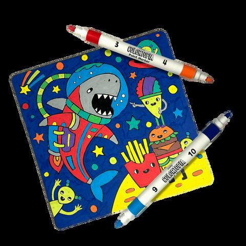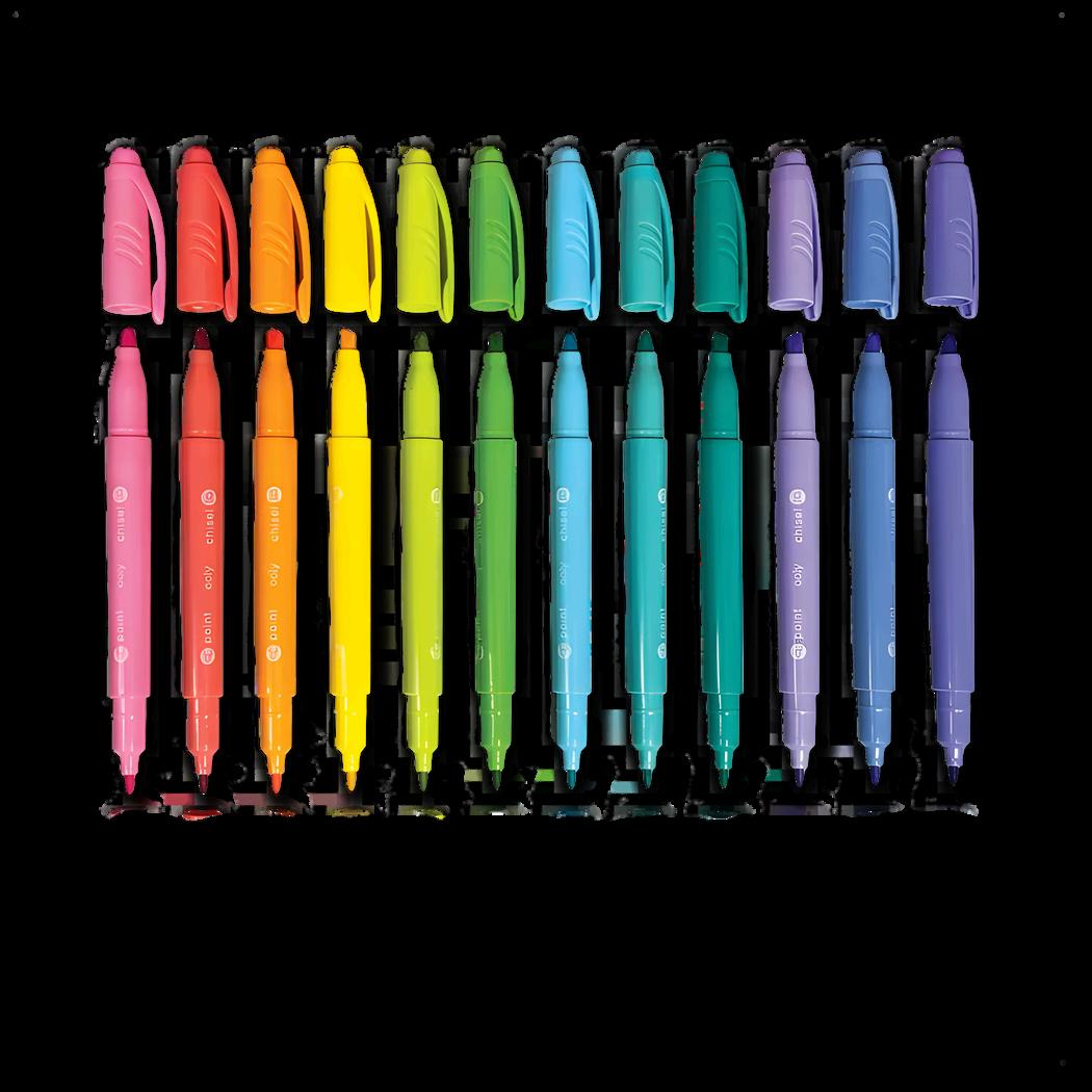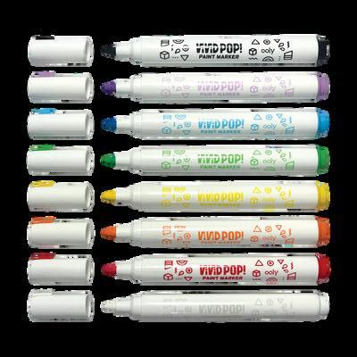 6 double-ended waterbased paint markers are included (giving you 12 colors in all)