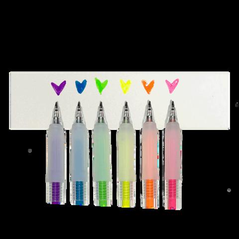 Set of 6 neon gel pens with dimensional, glossy ink