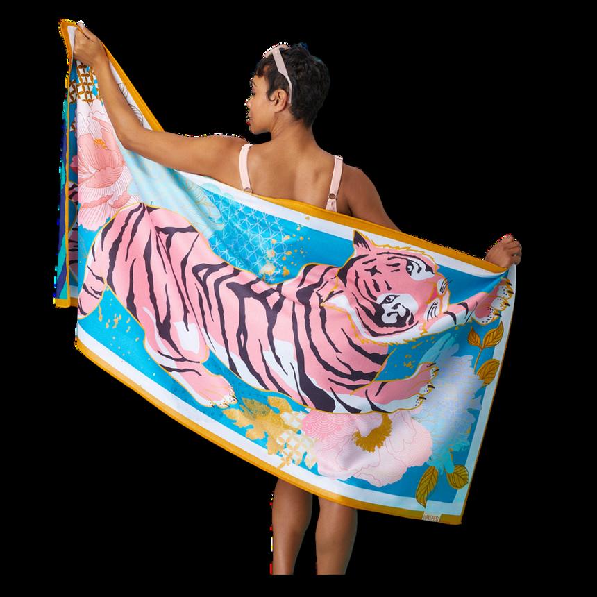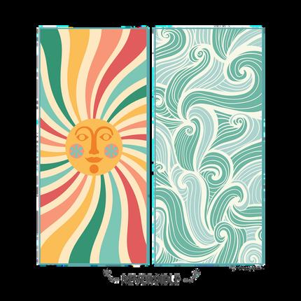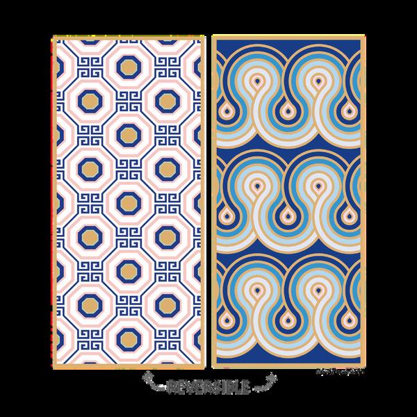Crafted with post-consumer materials, these large beach towels blend sustainability and style. These ultra-absorbent and quick-drying microfiber towels are reversible, featuring original works of art on both sides. Perfect as a gift for the holiday hostess, they offer a unique combination of functionality and aesthetic appeal. Embrace eco-friendly luxury with these beautifully designed towels, ideal for any beach outing or home use.