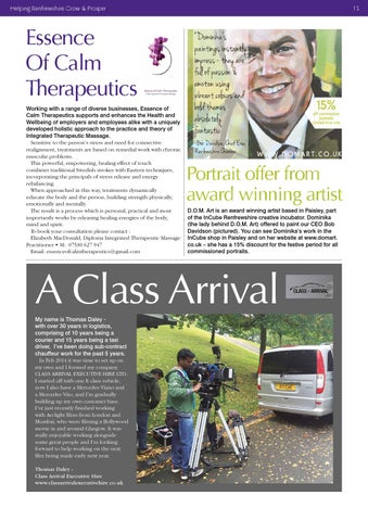 Essence Of Calm Therapeutics Working with a range of diverse businesses, Essence of Calm Therapeutics supports and enhances the Health and Wellbeing of employers and employees alike with a uniquely developed holistic approach to the practice and theory of Integrated Therapeutic Massage. Sensitive to the person’s stress and need for connective realignment, treatments are based on remedial work with chronic muscular problems. This powerful, empowering, healing effect of touch combines traditional Swedish strokes with Eastern techniques, incorporating the principals of stress release and energy rebalancing. When approached in this way, treatments dynamically educate the body and the person, building strength physically, emotionally and mentally. The result is a process which is personal, practical and most importantly works by releasing healing energies of the body, mind and spirit. To book your consultation please contact : Elizabeth MacDonald, Diploma Integrated Therapeutic Massage Practitioner • M: 07530 627 947 Email: essenceofcalmtherapeutics@gmail.com